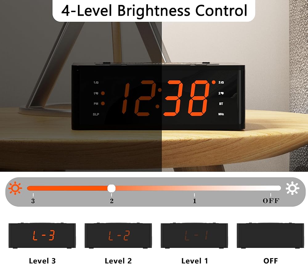 CLEAR LED DISPLAY WITH DIMMER: With 4-level brightness dimming control function, you can adjust the brightness of the LED display by yourself, so that you can clearly understand the time while reducing unnecessary light during sleep.