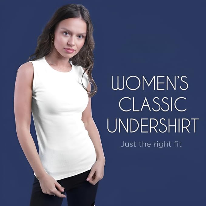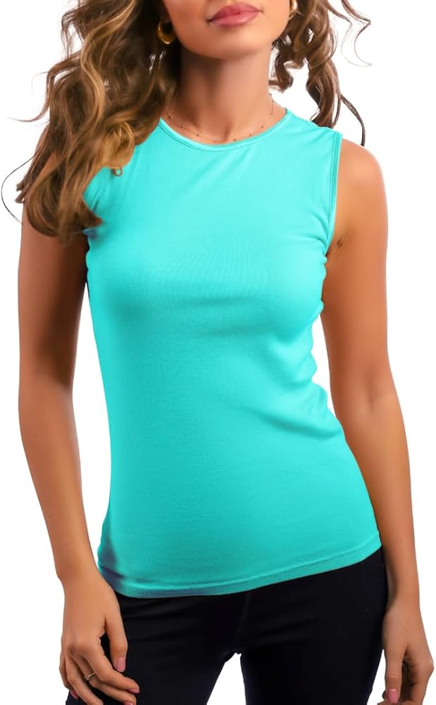Camisole Tops for Women, Sleeveless Cotton T-Shirt - Crew Neck - High Quality 100% Cotton Athletic Undershirt, High Neck, Full Shoulder Design