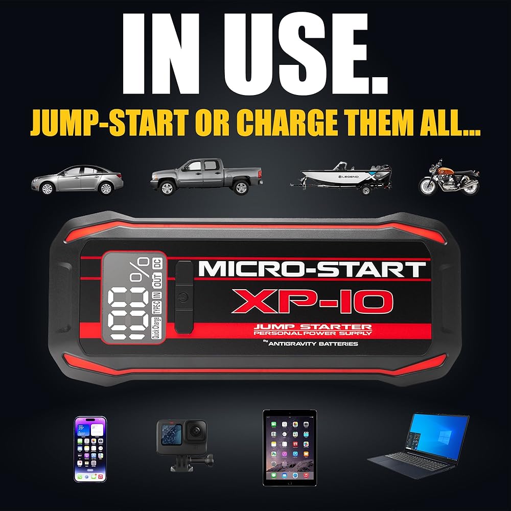 • POWERFUL 12V JUMP STARTER FOR GAS & DIESEL VEHICLES The Antigravity XP-10 lithium jump starter is designed to jump-start 12V vehicles, including cars, trucks, and SUVs, and is capable of starting gas engines and diesel engines up to 7.3L.