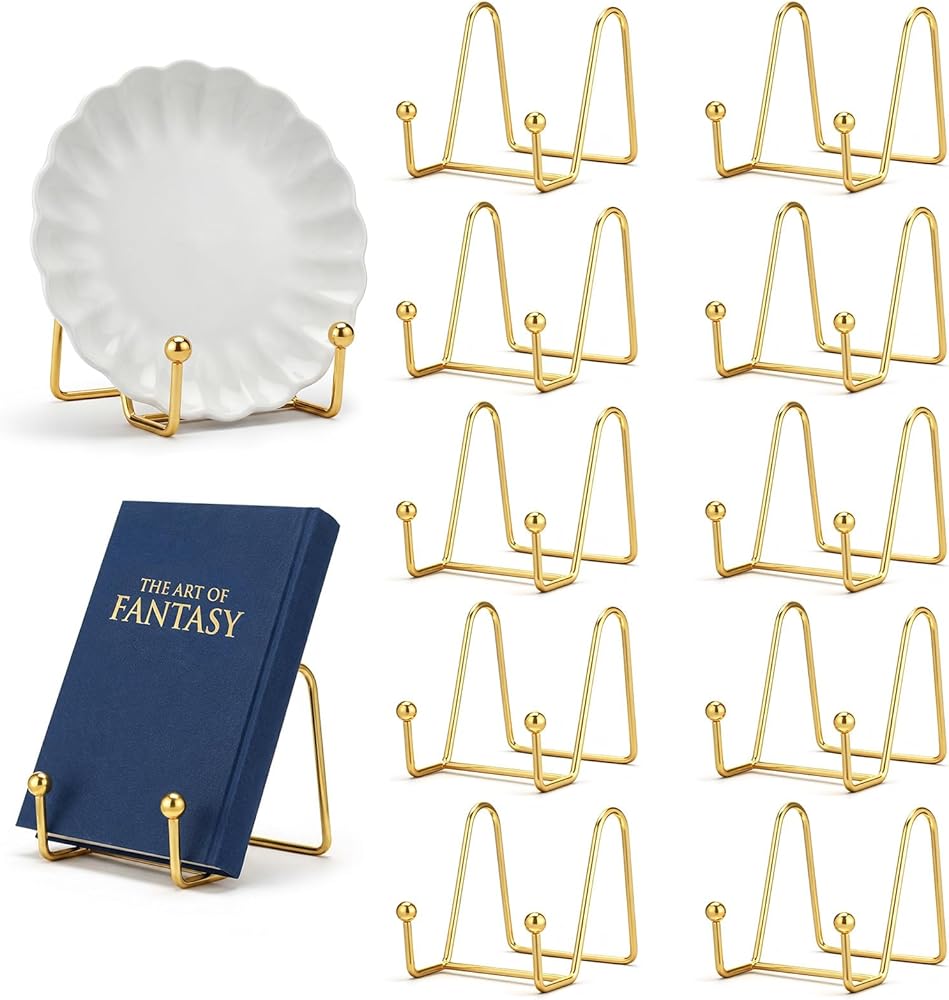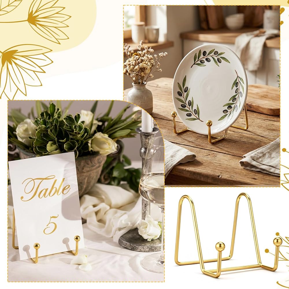 Stable and Durable: The gold plate stand design allows it to stand firmly on a flat surface, sturdy enough to support your decorative plates. This small easels for display resists tipping or falling over, providing a secure hold for any object