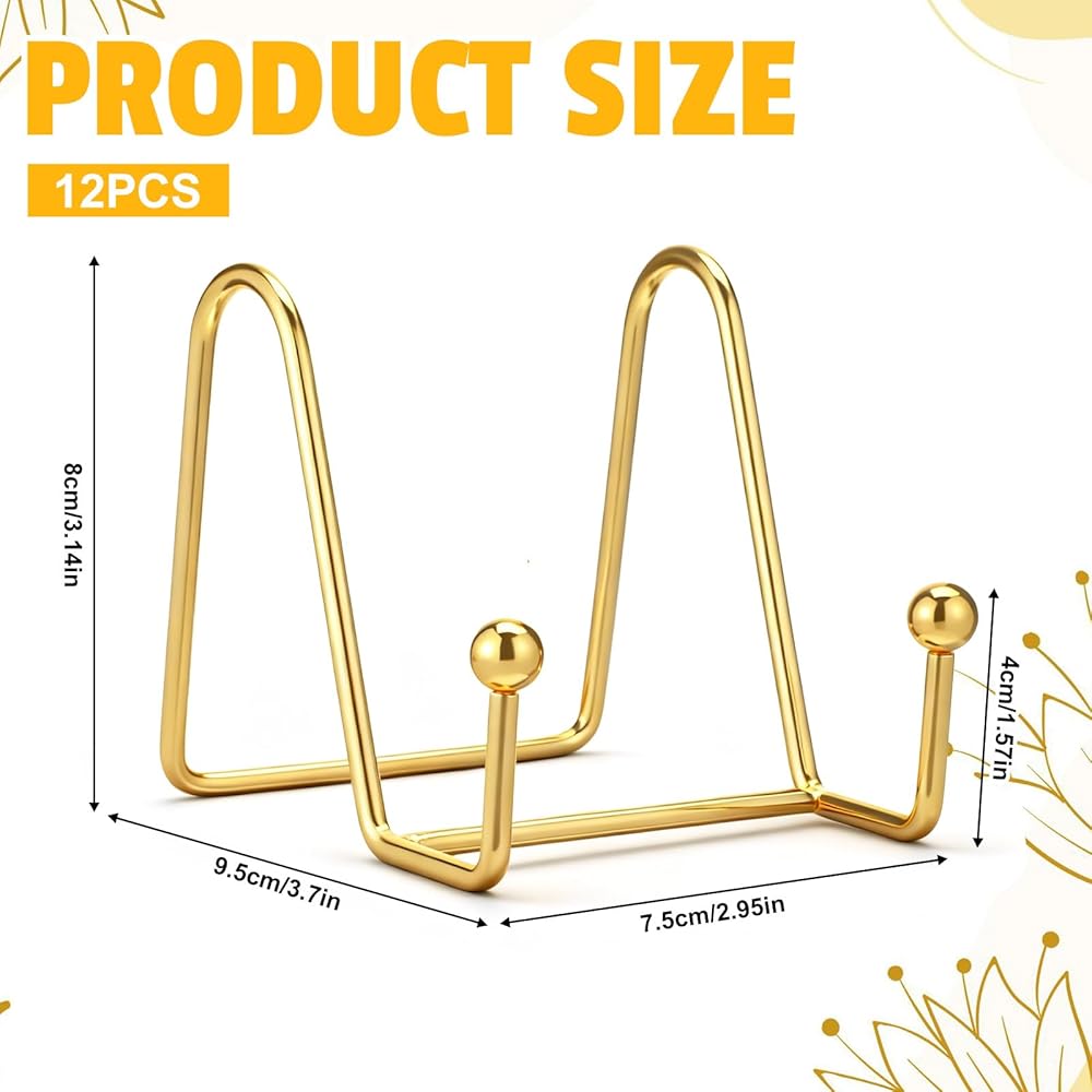 Product Name: 12 Pcs 3 Inch Gold Plate Stand, Decorative Plate Holder Metal Tabletop Picture Frame Stand