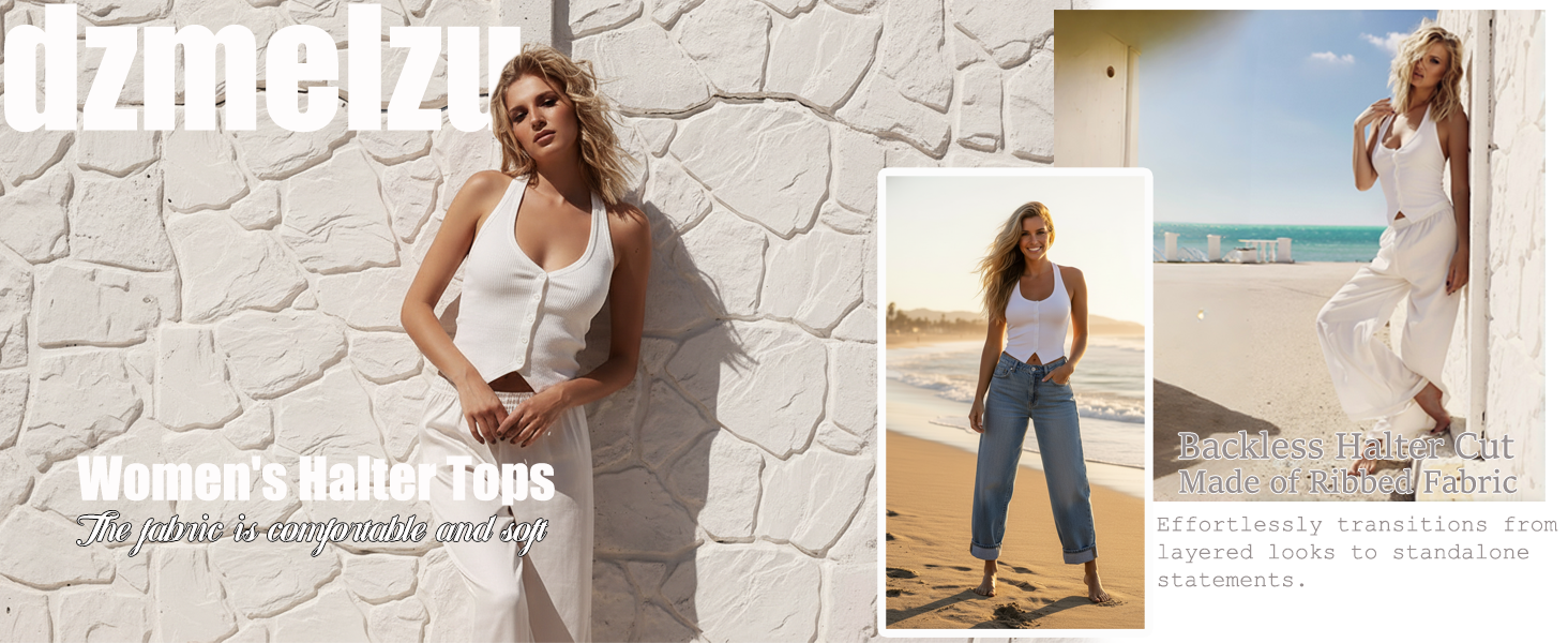 The halter tops for women design features a deep V-neck and open back, effectively elongating the neckline, refining the face shape, and accentuating the elegant curves of the collarbone and bust. Additionally, during the hot summer months, the generous skin exposure offers unparalleled breath ability.