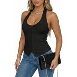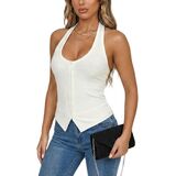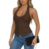 أعلى الرقبة الرسن للنساء مضلع عارية الذراعين قميص مثير الخروج قمم، Y2K زر يصل تانك الأعلى تاريخ النادي الليلي الحزب