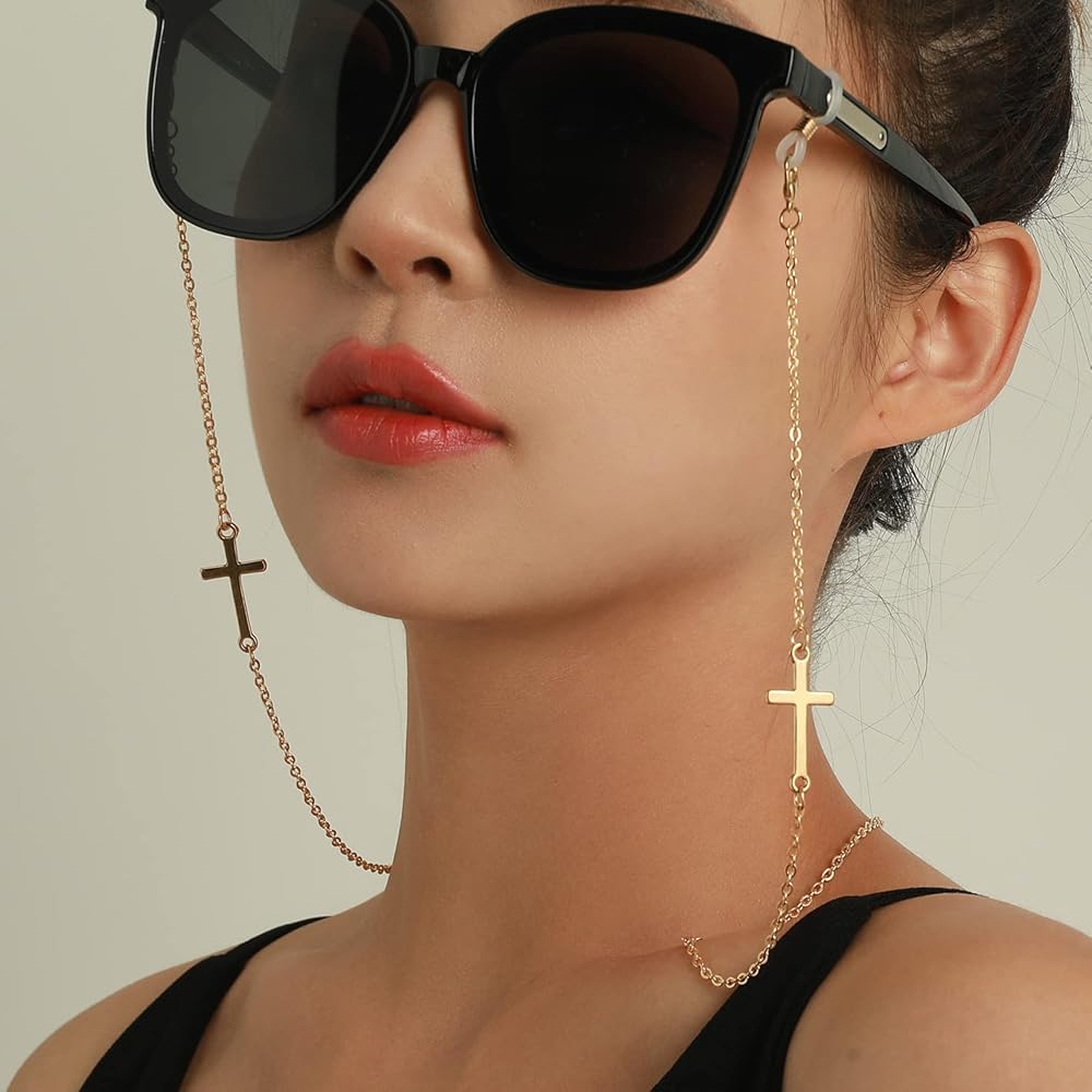 Stylish and trendy cross design: This eyeglasses chain features a fashionable and chic cross design that adds a touch of flair and sophistication to your look. The crosses are finely crafted and shiny, creating a beautiful contrast with your eyewear.