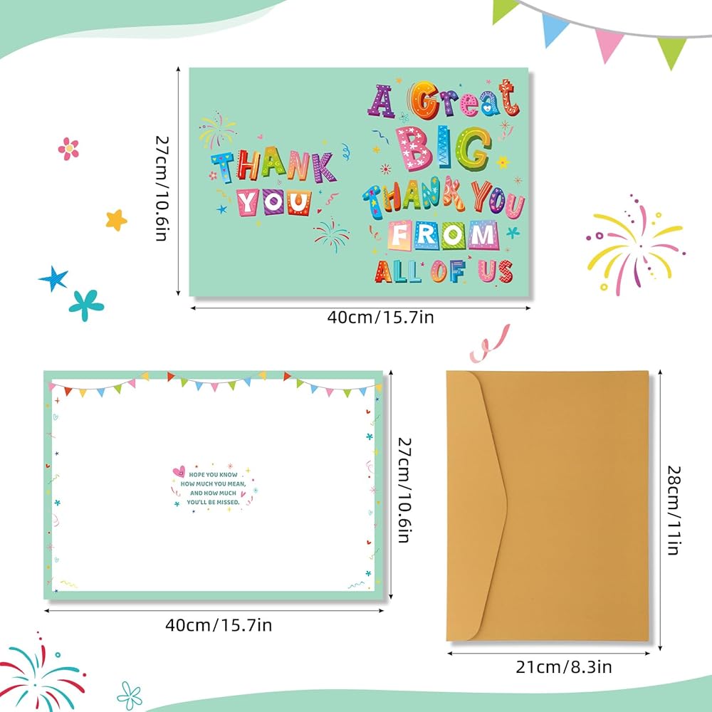 • Versatile Use: Whether for a farewell party, retirement celebration, Teacher's Day, a colleague's promotion, or simply to express deep gratitude, this large card is an excellent gift that elevates any special occasion.