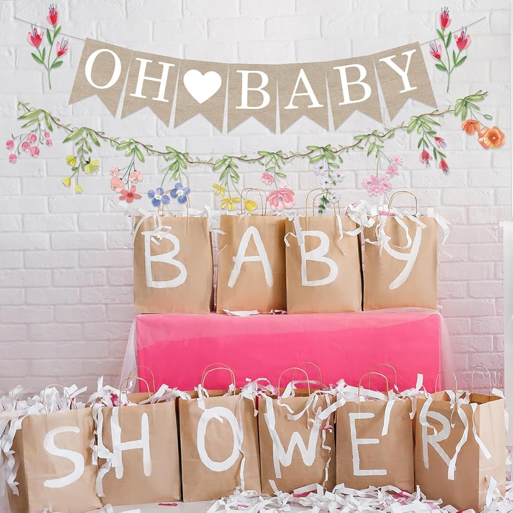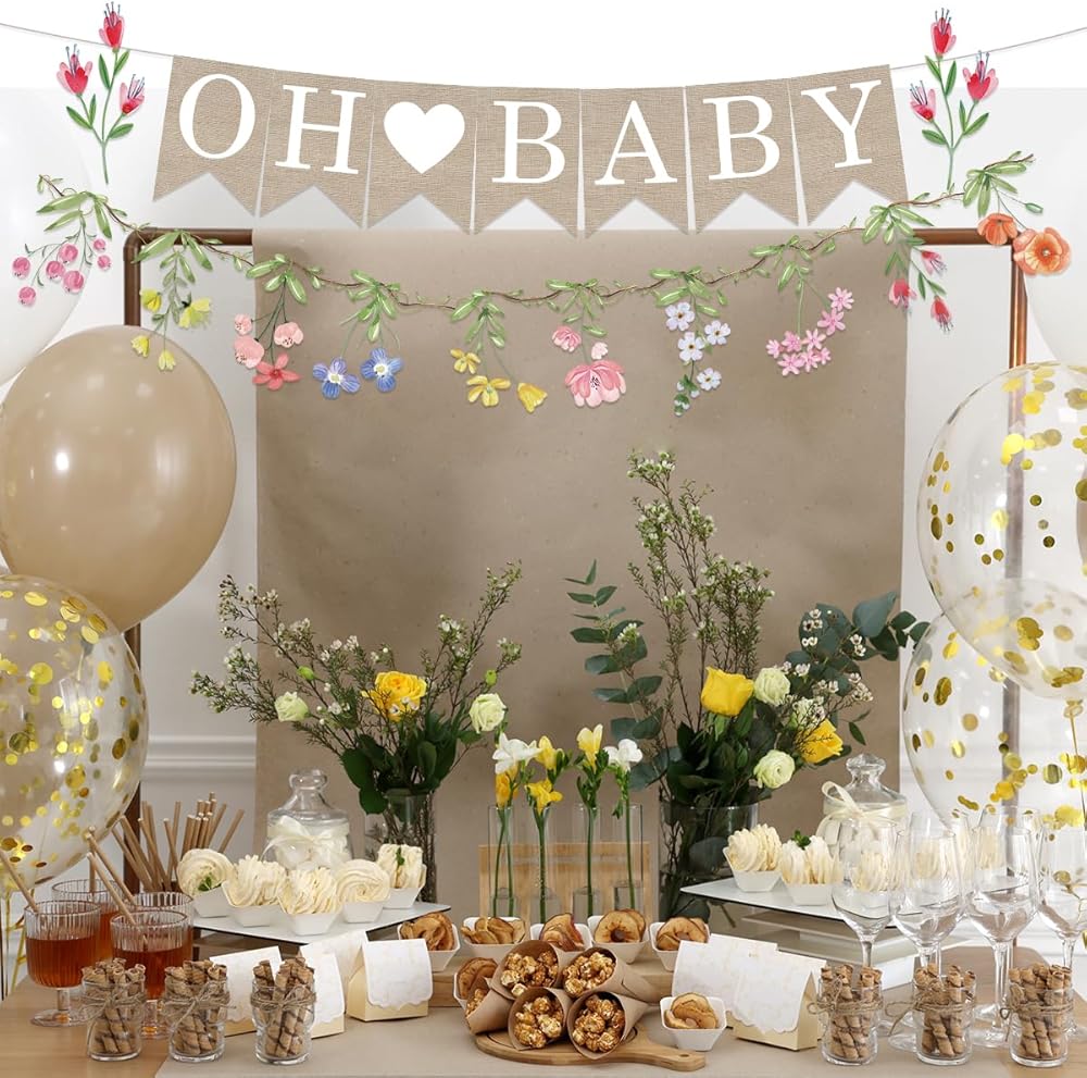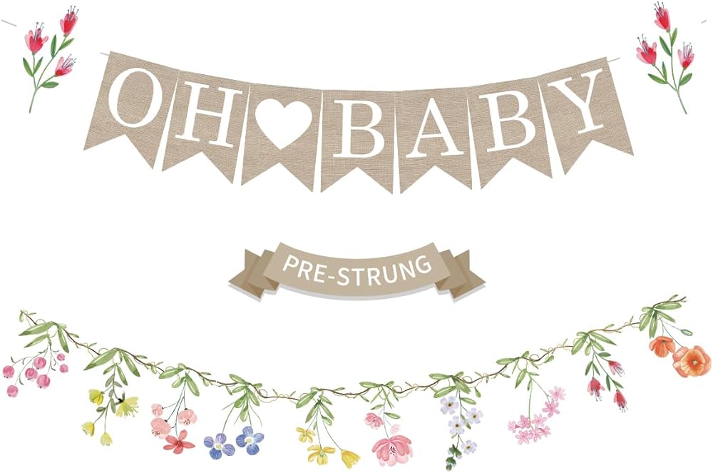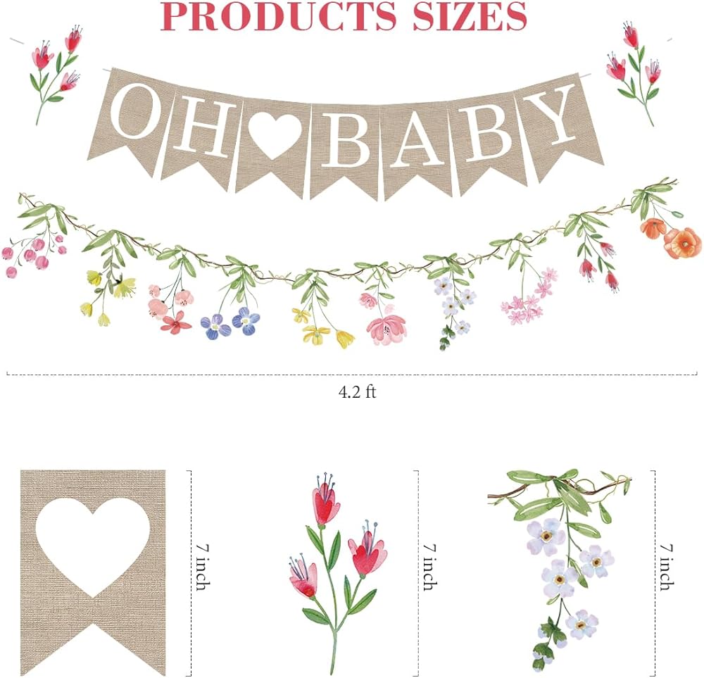 What you can get: The package include a string of burlap oh baby banner and floral decorations banner with 10 different lovely wildflowers