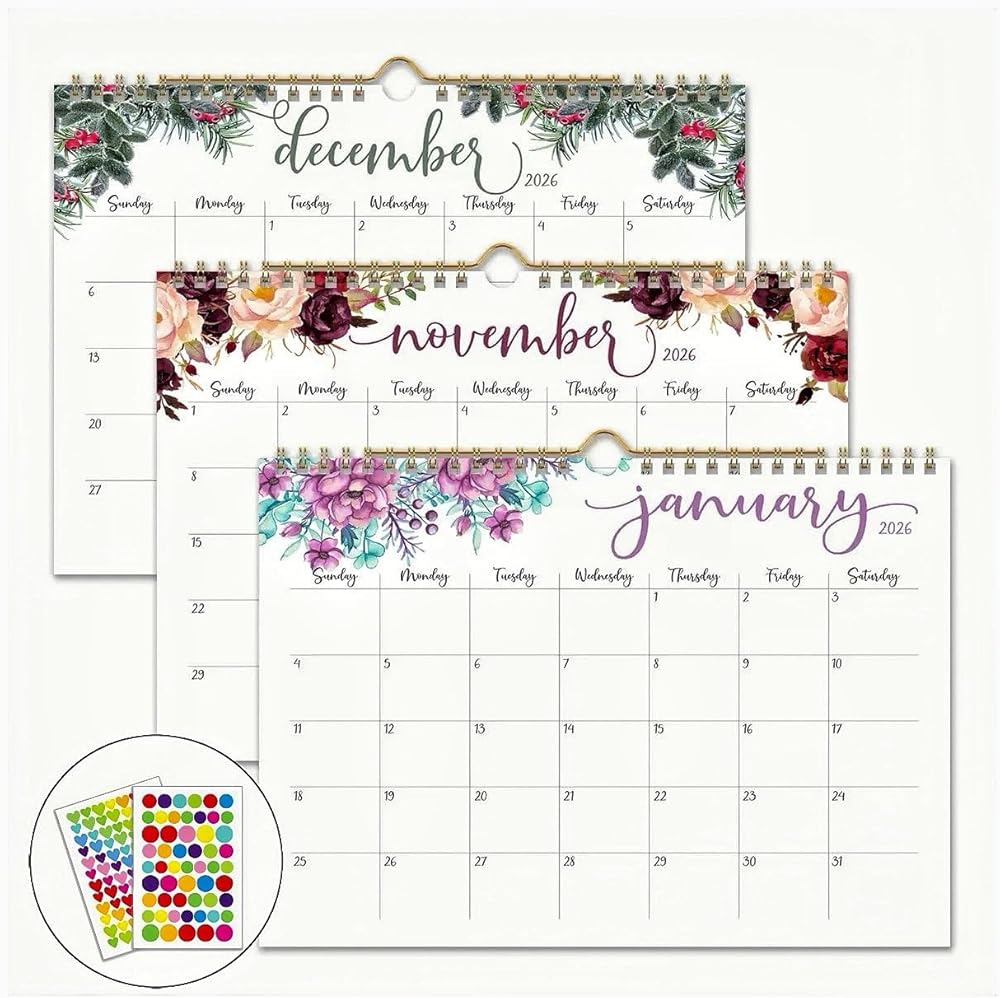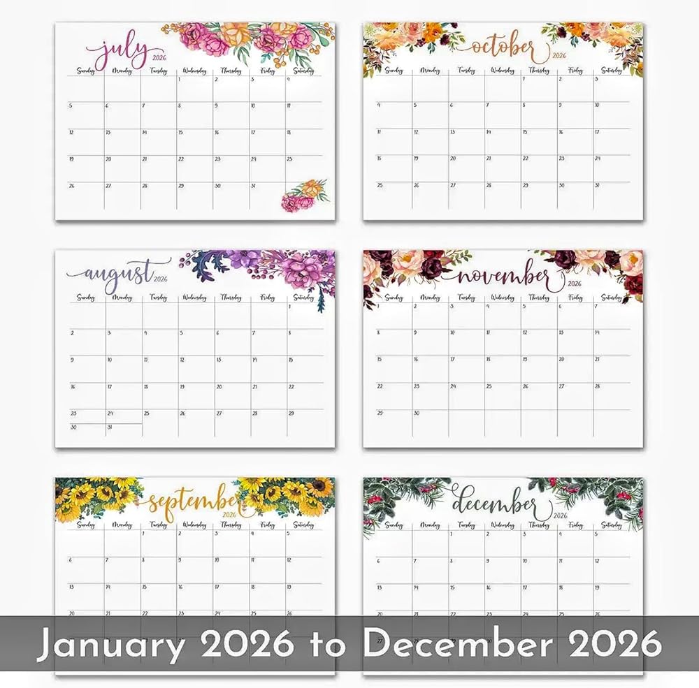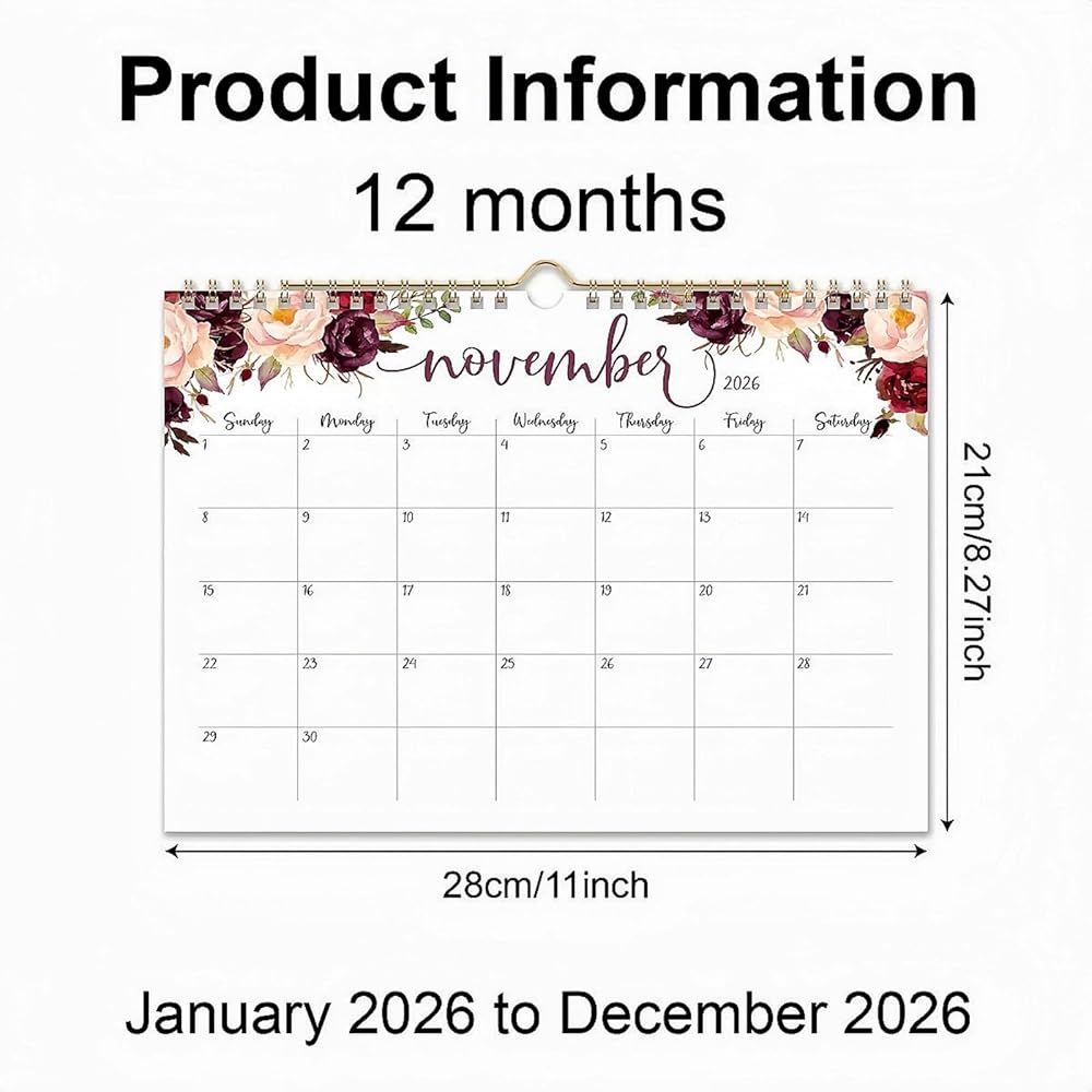 2026 Wall Calendar:January 2026 to December 2026 Wall Calendar 11 × 8.27 inches (Approx. 28× 21 cm), Minimalist floral design for school home office planning and organization, meets all of your needs for easy planning and organization of your life.
