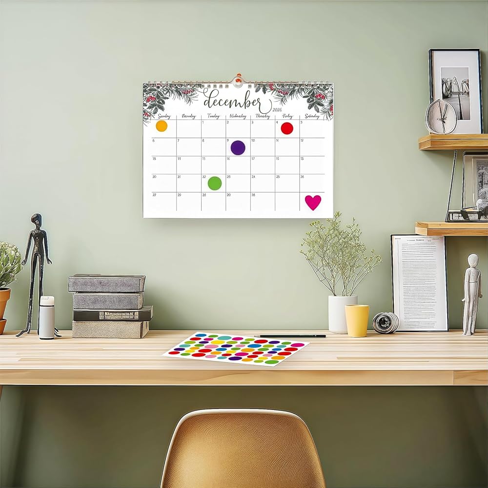 Excellent Quality: The calendar is made of high quality paper that prevents ink bleed through and is suitable for most pens. It has a sturdy double wire binding for easy page turning. High-quality hooks allow for flexible hanging.
