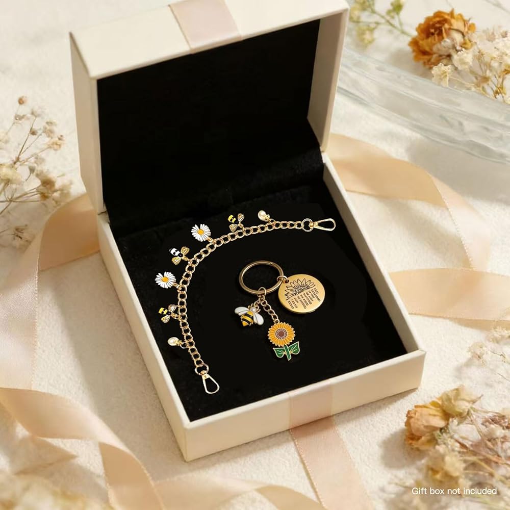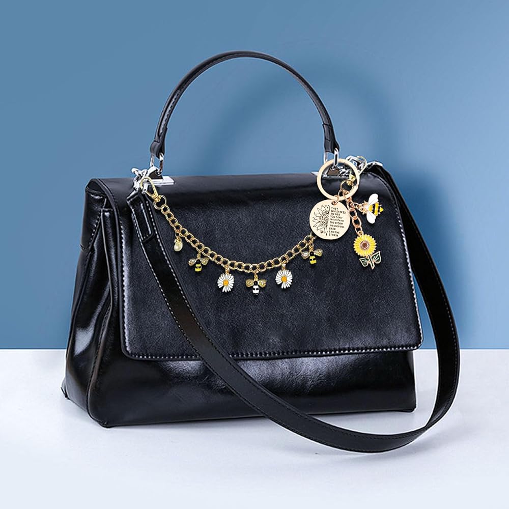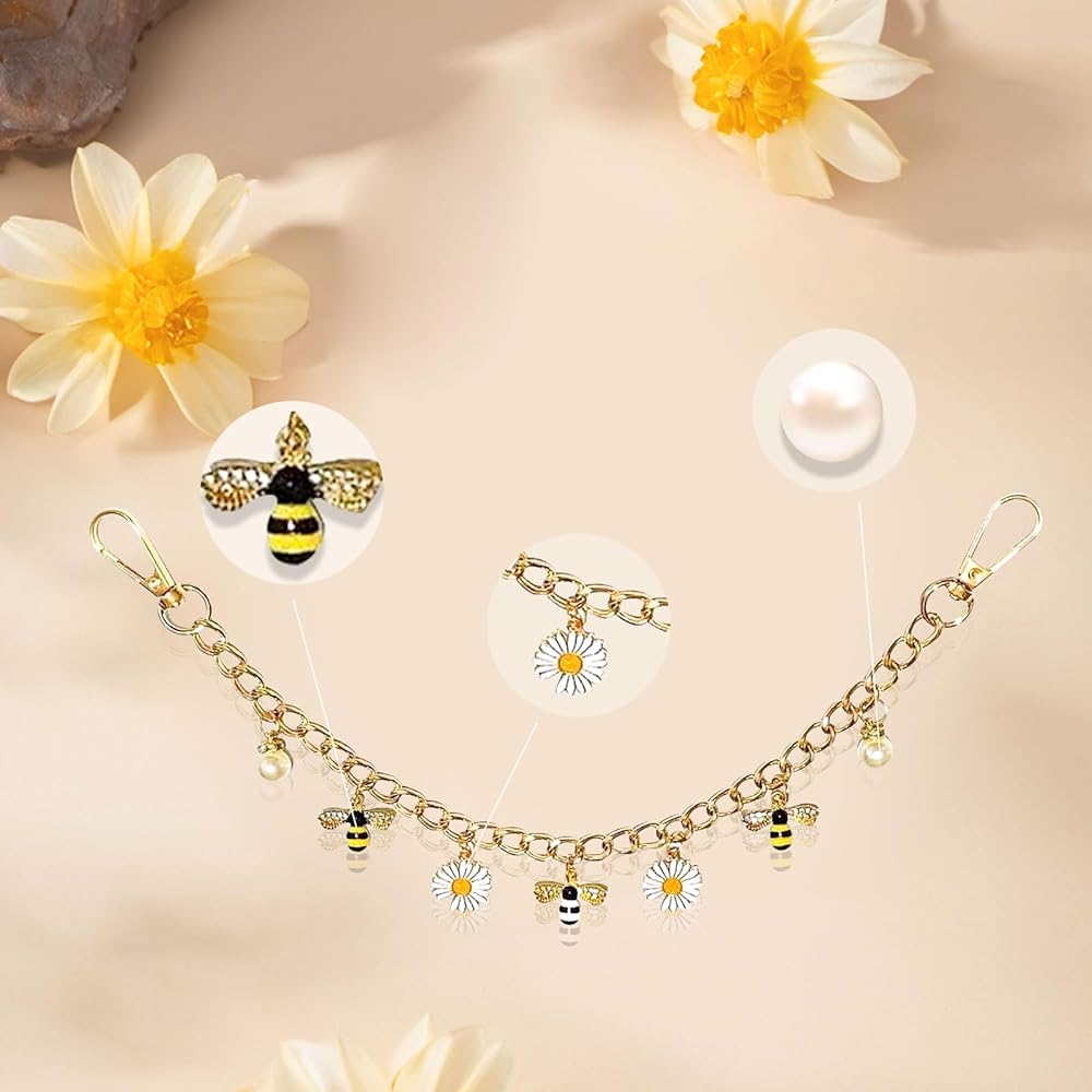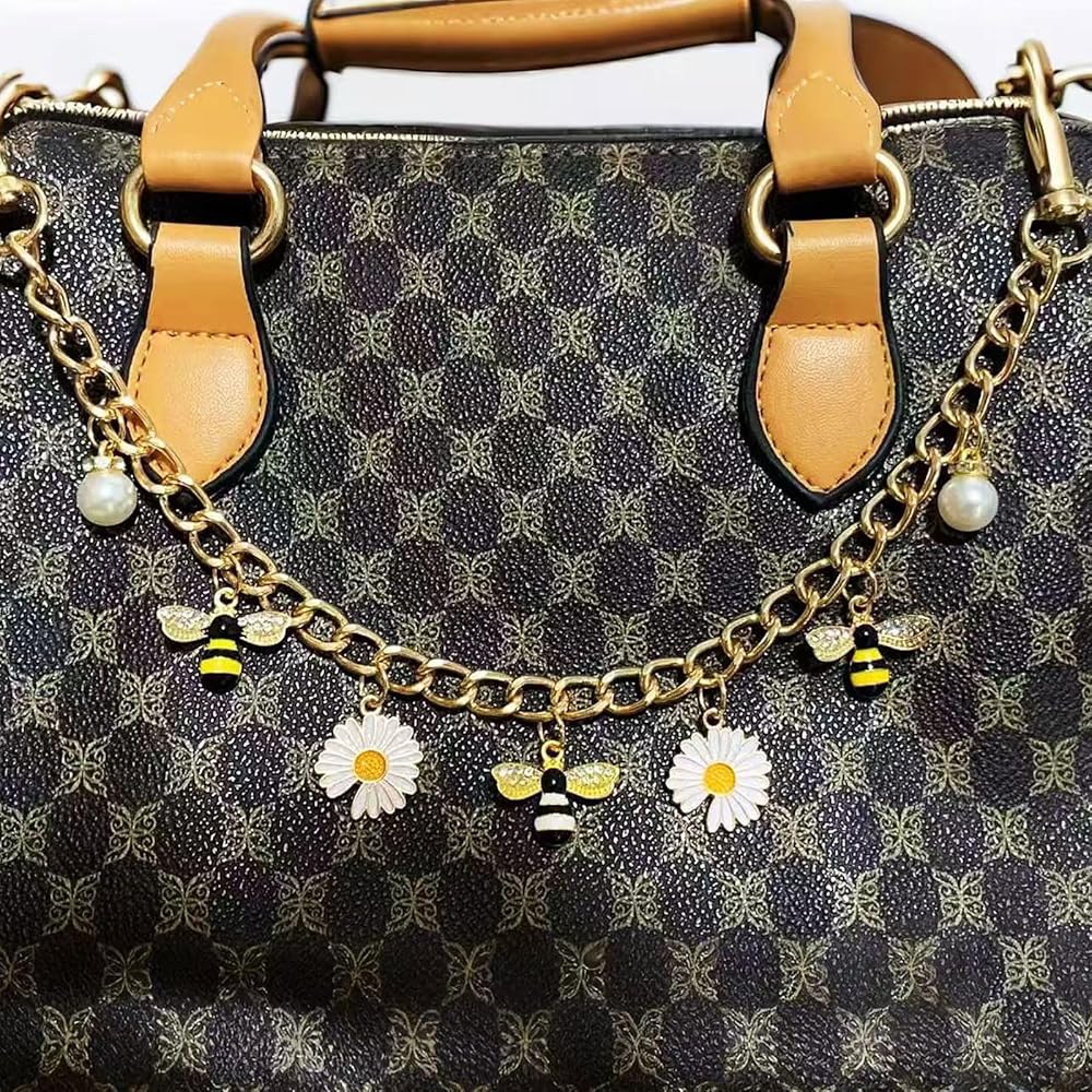 【Universal Purse Chain Strap Replacementet】This set includes two distinct bag charm pendants, each with a gold-tone chain. Featuring a combination of a bee, daisy, sunflower, and lustrous pearl, the set offers two stylish looks to mix, match, or gift.
