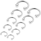 5 Pairs of Horseshoe Rings Round Balls Different Size 6mm 8mm 10mm 12mm 14mm Each Size One Pair,can be used for Labret Stud, Lip, Tragus, Earrings, Eyebrow, Chip, Septum Rings, Cartilage Jewelry, and Nose Ring Piercing.