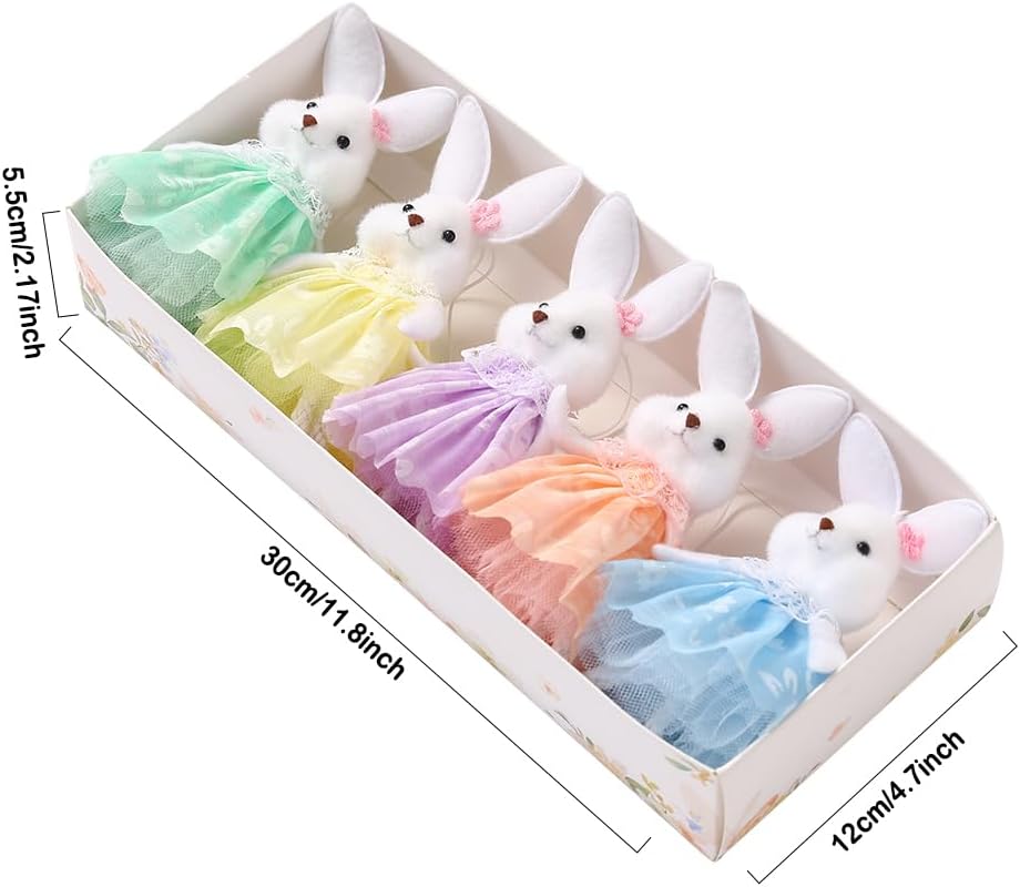 زينة عيد الفصح السعيدة: أرنب عيد الفصح الخاص بنا لطيف ومريح، ومن المؤكد أنه سيضيف الكثير من المرح إلى حفلة عيد الفصح الخاصة بك. يحتوي صندوق هدايا عيد الفصح الخاص بنا على خمسة أرانب صغيرة ترتدي فساتين ملونة مختلفة، والتي لا يمكن تعليقها فحسب، بل يمكن استخدامها أيضًا كديكور لسطح المكتب لإضافة جو عيد الفصح إلى منزلك