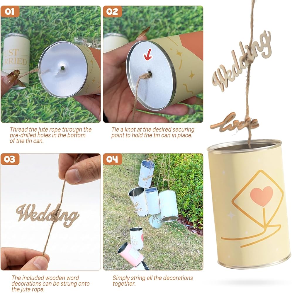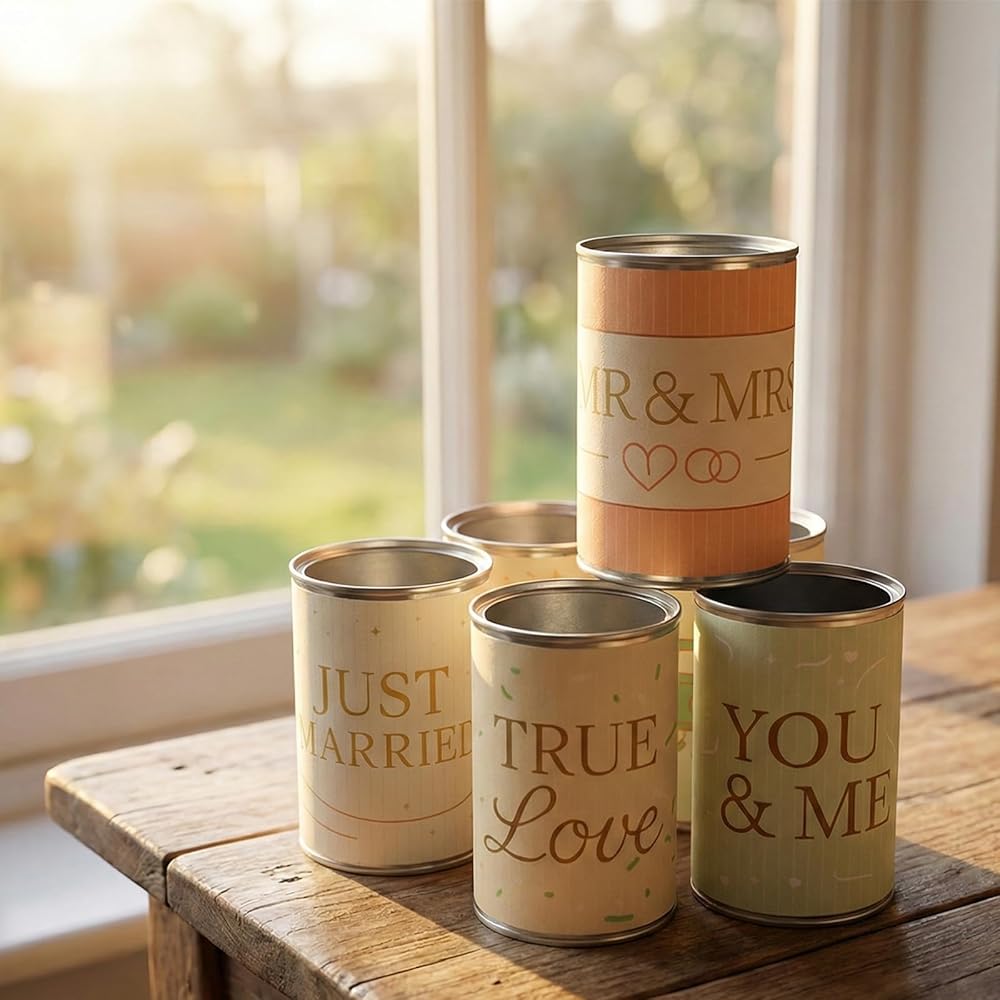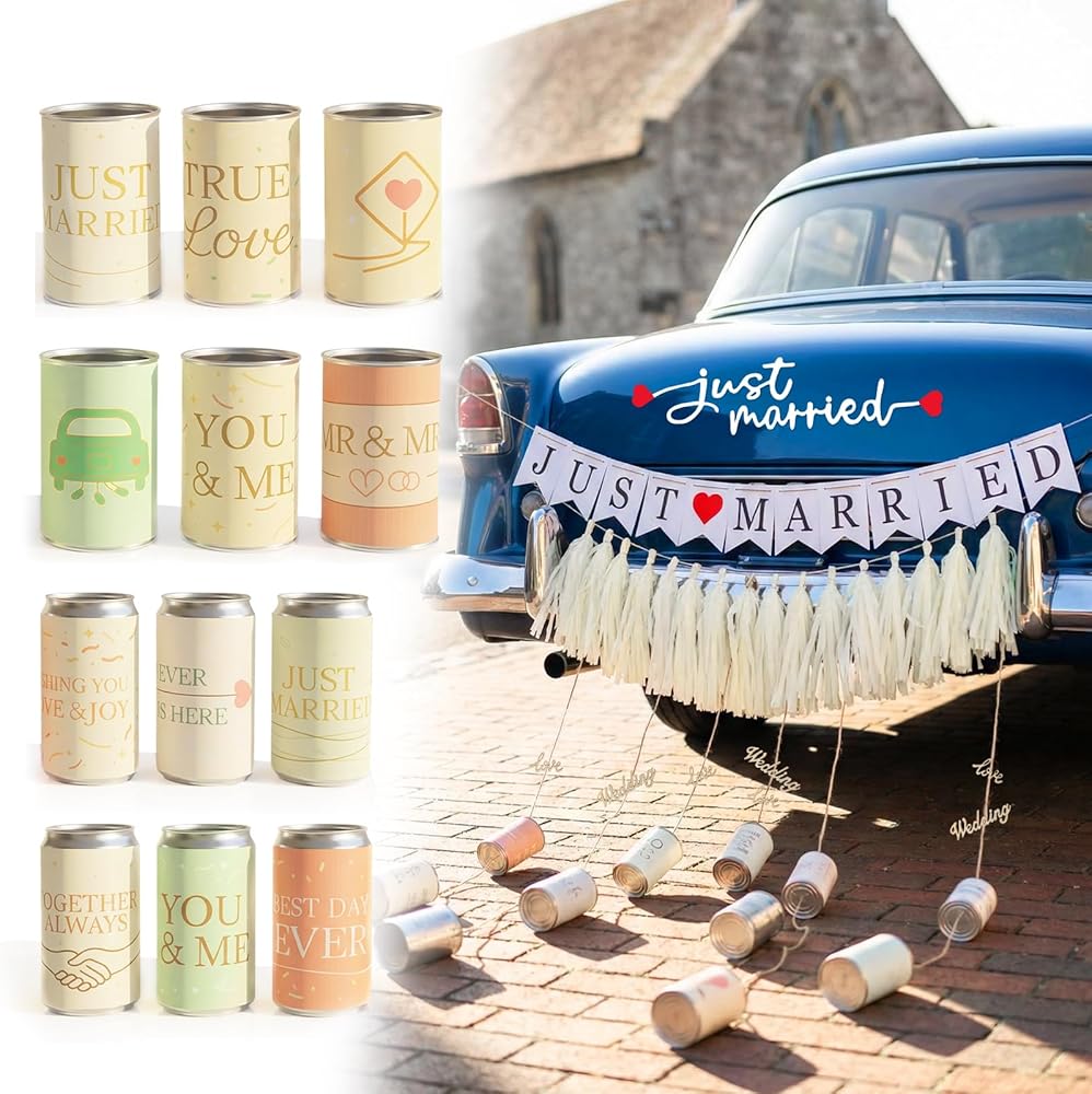 【أعد صوت الحب】 اجعل حفل زفافك لا يُنسى مع مجموعة علب Just Married المصنوعة يدويًا - وهي إحياء حديث لتقليد الإرسال الكلاسيكي. لقرون طويلة، كانت العلب الملتصقة خلف سيارة الزفاف ترمز إلى السعادة والبركات والحياة المليئة بالبهجة. الآن أصبح هذا الصوت الخالد هو صوتك - بصوت عالٍ بما يكفي لجذب الأنظار، وجميل بما يكفي لإذابة القلوب.