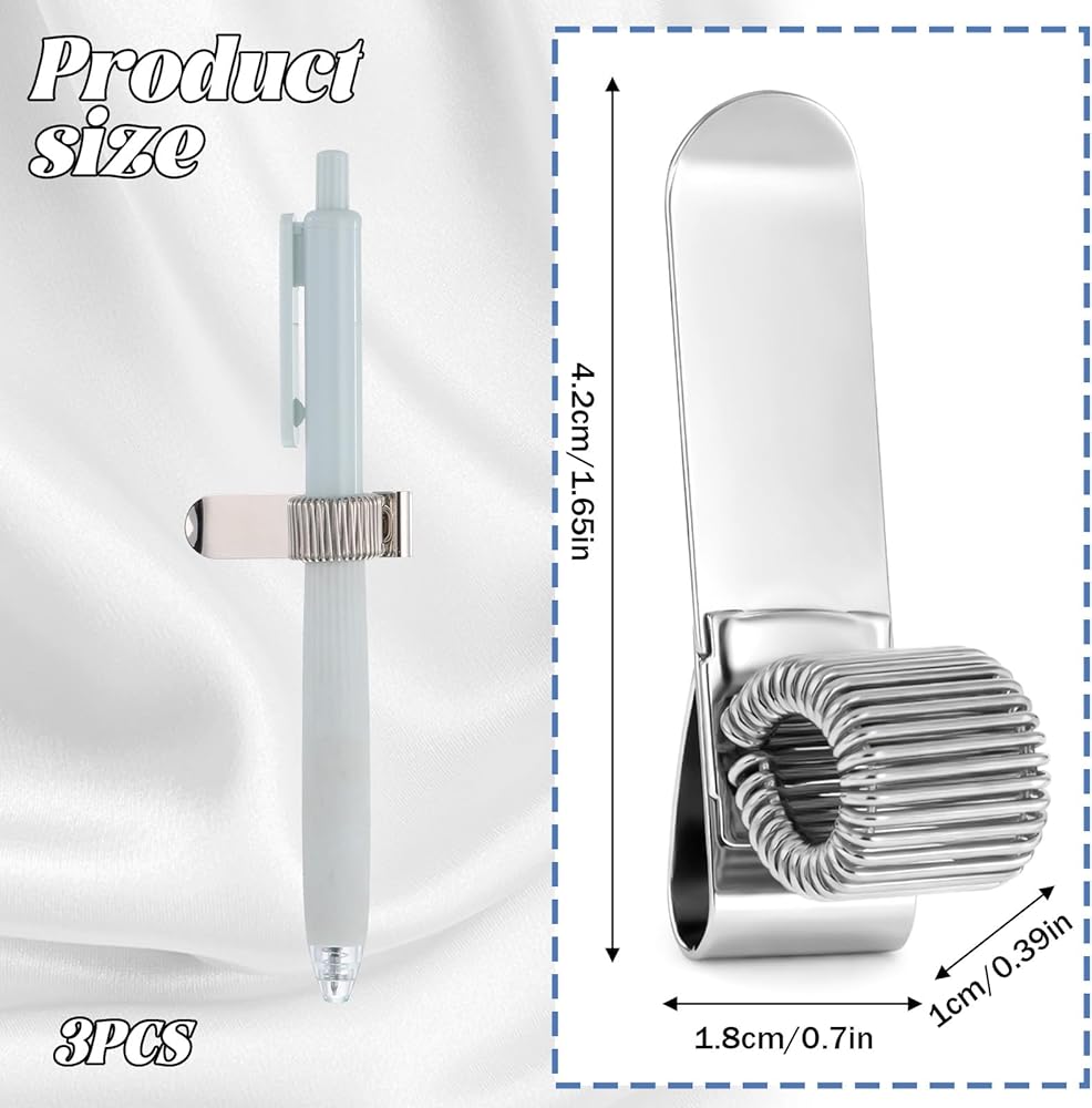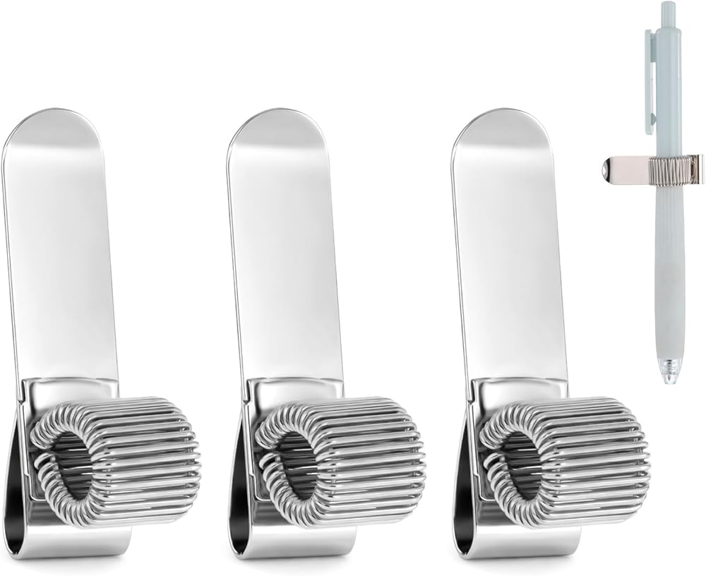 Tired of misplacing your pen during important tasks? Our adjustable pen holder clip offers a simple and effective solution to keep your writing instrument securely attached to your notebook, clipboard, or journal. Made from durable stainless steel, this compact organizer ensures your pen is always handy, whether you're taking notes in a meeting, checking items off a list, or working on the go.