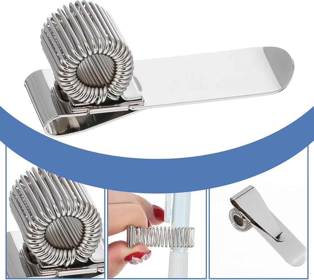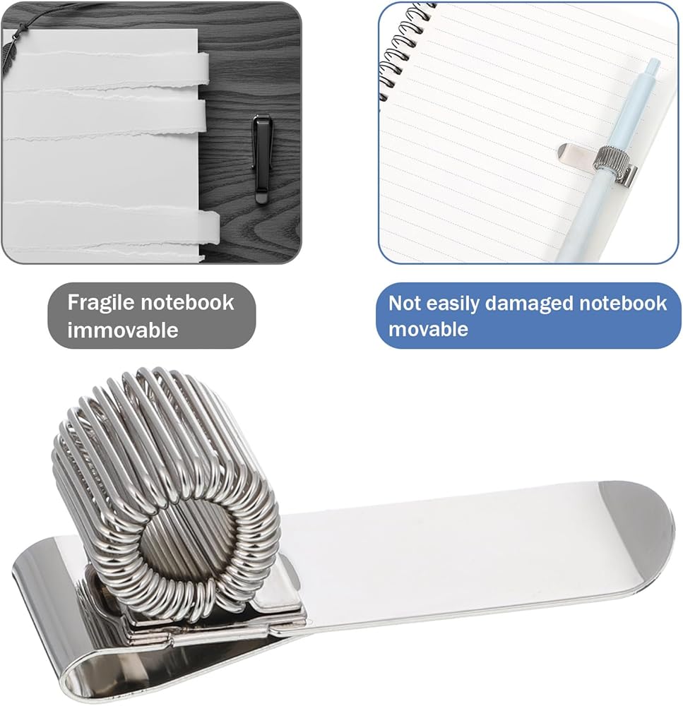 • 【Durable Material】Crafted from high-quality stainless steel with a polished finish, this metal pen holder boasts excellent rust and corrosion resistance, plus moderate flexibility for durable long-term use. The sturdy clip and reinforced spring loop stand up to daily wear and tear, securely fastening pens to notebooks, clipboards and pockets without slipping or deformation.