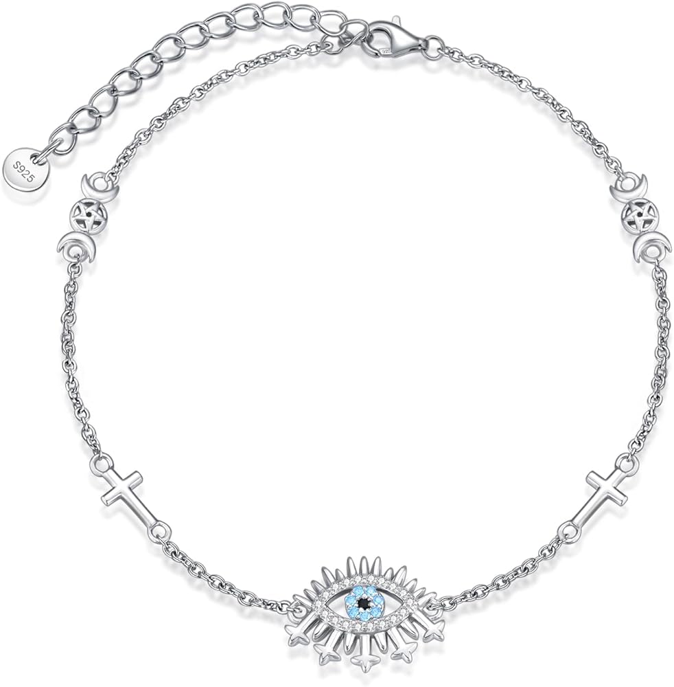【تفاصيل السوار】سوار عين الشر الأزرق اللامتناهي: 7+2 بوصة. مصنوع من الفضة الإسترلينية 925، لا يسبب الحساسية، ولا يحتوي على أي عناصر تسبب الحساسية. هذا السوار ليس جميلًا فحسب، بل متين أيضًا، مما يضمن بقاءه عنصرًا أساسيًا في مجموعة مجوهراتك. يكمل السوار الرقيق إضافة لمسة من الرقي لأي ملابس لأي ملابس.
