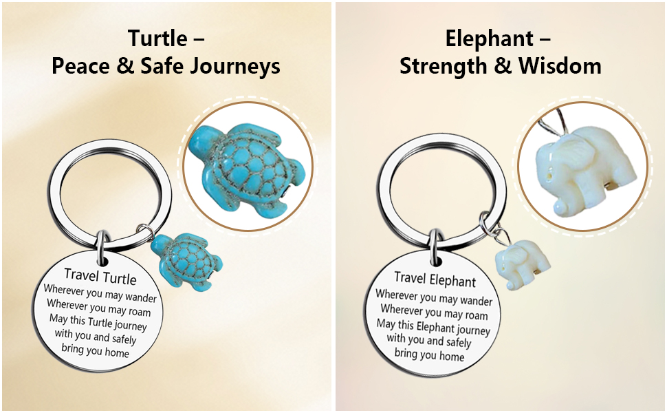 【هدية مدروسة ذات معنى عميق】أكثر من مجرد إكسسوار لطيف، تم تصميم سلسلة المفاتيح الثنائية هذه للتعبير عن الرعاية والتشجيع. مثالية كهدية سلحفاة للنساء أو هدية فيل للنساء، إنها هدية مثالية لأعياد الميلاد أو التخرج أو إرسال السفر أو لحظات "التفكير فيك" التي تستحق شيئًا رمزيًا ومن القلب.