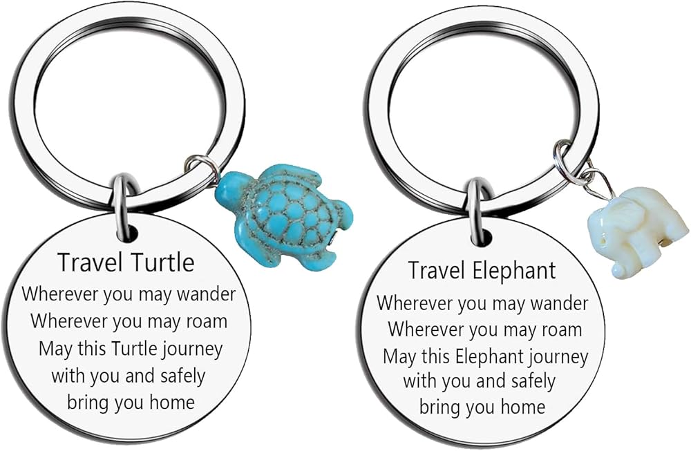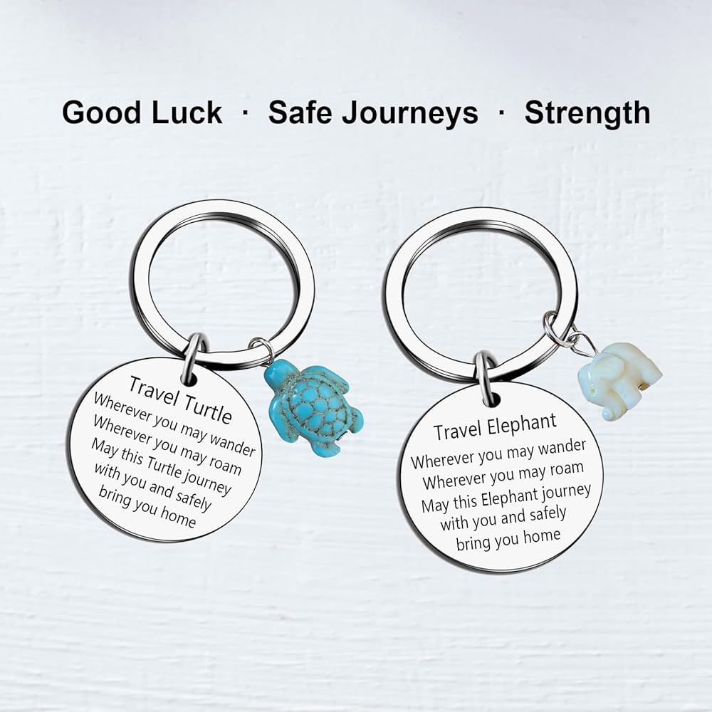 مجموعة سلسلة مفاتيح السلحفاة والفيل - سلسلة مفاتيح للسفر على شكل سلحفاة بحرية مع سحر الفيل، سلاسل مفاتيح رمز الحيوان ذات مغزى للنساء، هدية حظ جيدة للمسافرين والأصدقاء والعائلة وإكسسوارات الحمل اليومية