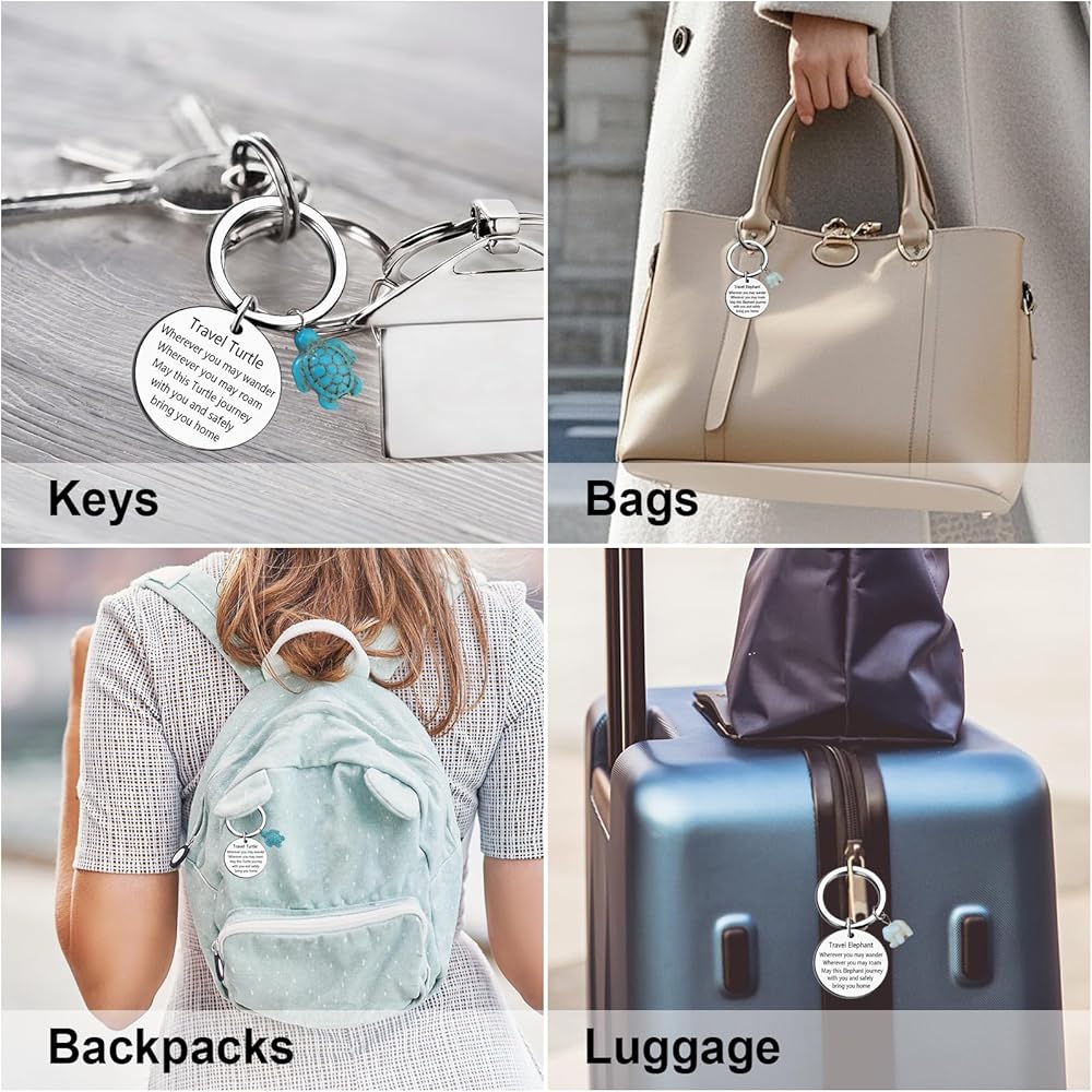 【سلسلة مفاتيح مثالية للسفر لأي مغامرة】خفيفة الوزن وصغيرة الحجم، مجموعة سلسلة مفاتيح السلحفاة للسفر هذه يمكن ربطها بسهولة بمفاتيح السيارة أو حقائب الظهر أو حقائب اليد أو سحابات الأمتعة. سواء كنت متجهًا في رحلة جديدة أو ببساطة تتنقل يوميًا، فهي تعمل كسلسلة مفاتيح عملية للسفر وسحر شخصي ذو معنى.