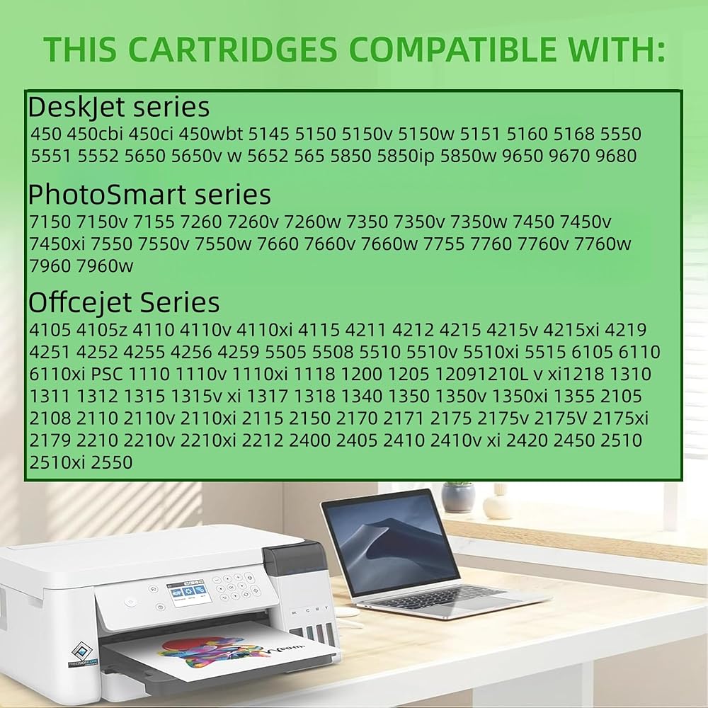 • متوافق مع: ناسخة 410 DeskJet 450 450cbi 450ci 450wbt 5150 5150v 5150w 5151 5550 5550v 5551 5650 5650v 5650w 5655 5850 5850w 9650 9670 9680 9680gp الفاكس 1240 OfficeJet 4110 4110v 4110xi 4215 4215v 4215xi 4255 5505 5508 5510 5510v 5510xi 5515 5600 5605 5605z 5607 5608 5609 5610 5610v 5610xi 5615 5679 5680 6105 6110 6110v 6110xi J5508 J5520