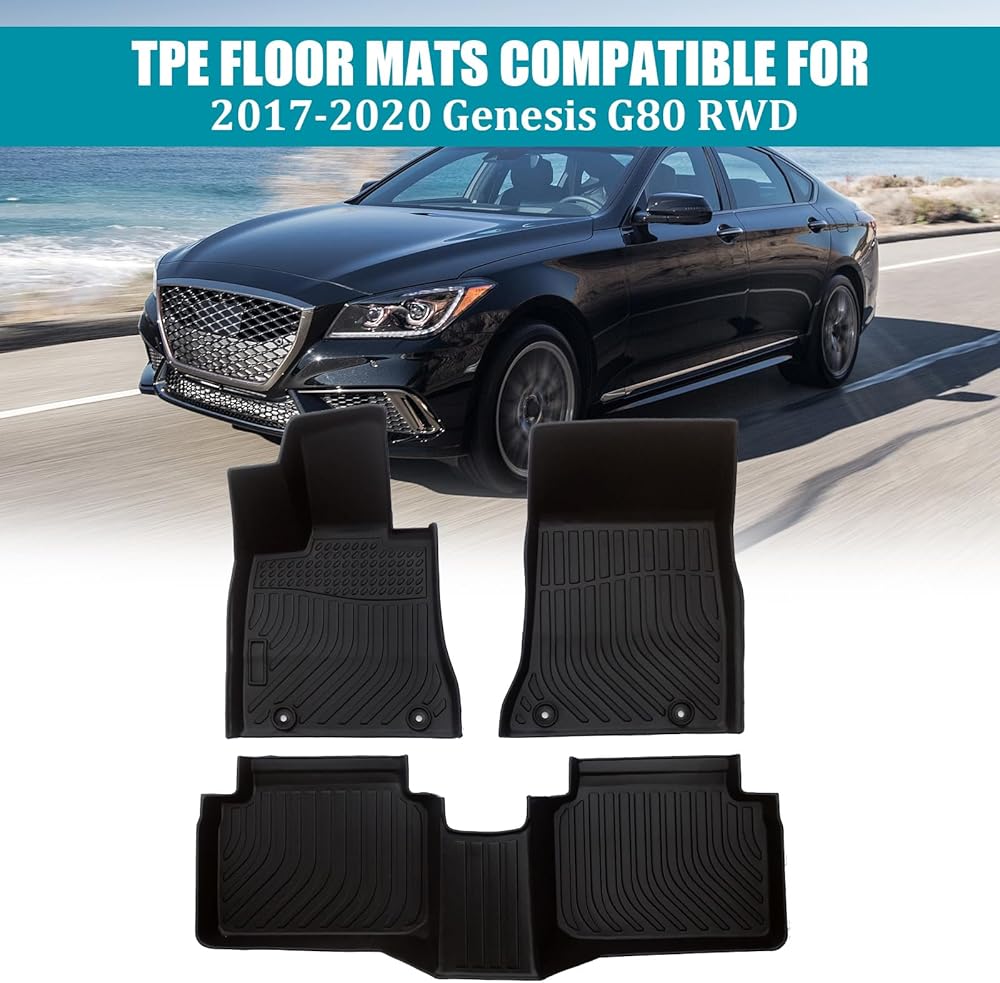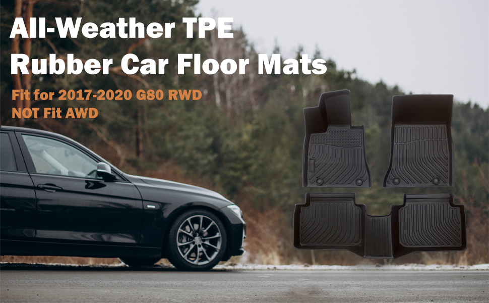 ملاءمة محددة للمركبة: تم تصميم سجادات أرضية السيارة هذه خصيصًا لسيارة Genesis G80 RWD 2017-2020، ولا تناسب AWD، وقد تم تصميم السجادات لتناسب الأبعاد الدقيقة لسيارتك، والتصميم الأنيق يتكامل بسلاسة مع الجزء الداخلي للسيارة.
