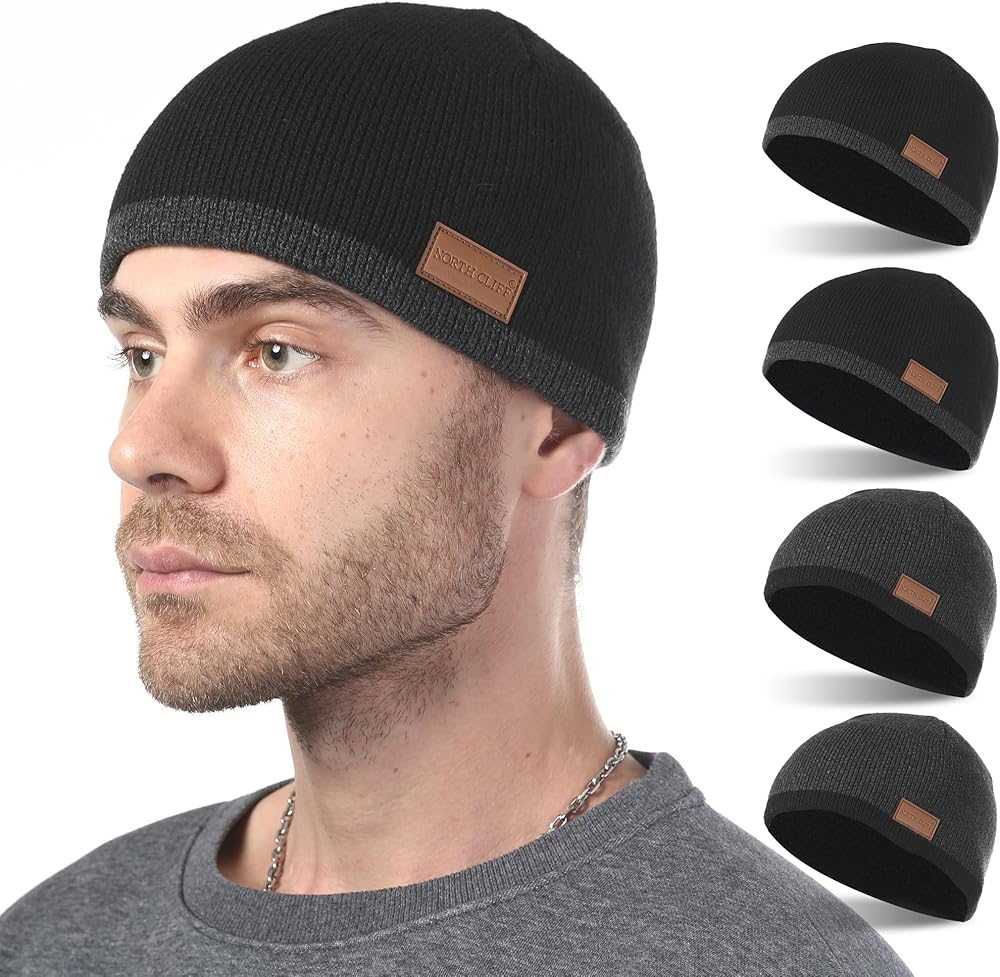 • UNIVERSAL UNISEX DESIGN: With its classic style and snug fit, this beanie is perfect for men, women, and teens, ensuring it's a versatile winter wardrobe essential. The set includes 2pcs black and 2pcs dark grey hats, totaling four hats are easy to change and choose your favorite color, they are also very suitable for sharing with family and friends.