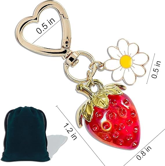 زينة حقيبة عالية الجودة للفتيات - الطول الإجمالي تقريبًا. 3 بوصات من أعلى القلب إلى أسفل الفراولة. خفيفة الوزن وملفتة للنظر للاستخدام اليومي والديكور.