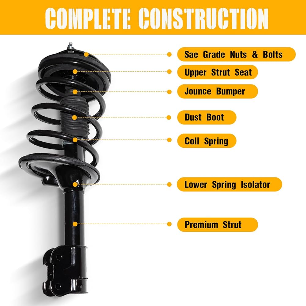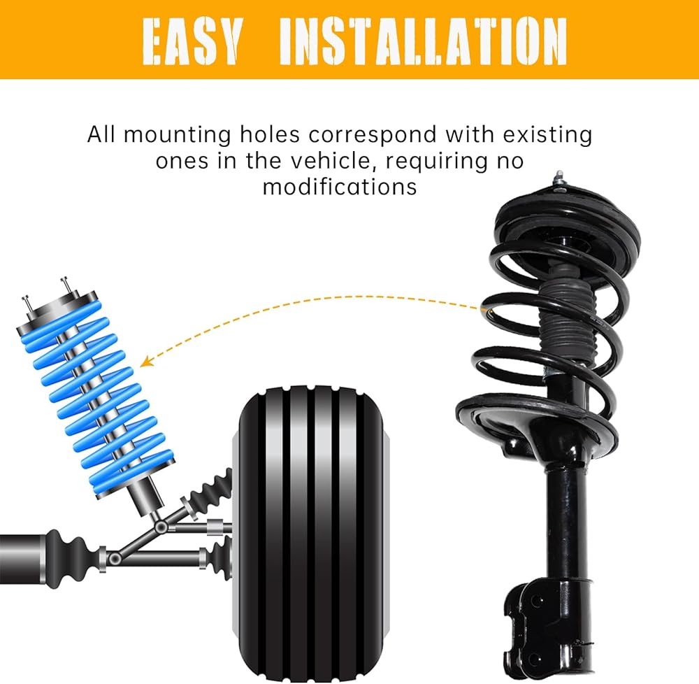 【سهلة التركيب】: يمكنك بسهولة إزالة واستبدال مجموعة الدعامة الكاملة في قطعة واحدة. لا تتطلب هذه استخدام ضاغط زنبركي خطير لتبديل الزنبركات، لذا فهي سريعة جدًا وآمنة وسهلة التركيب