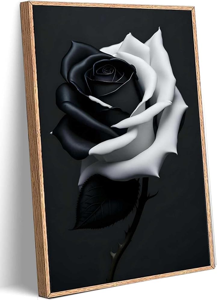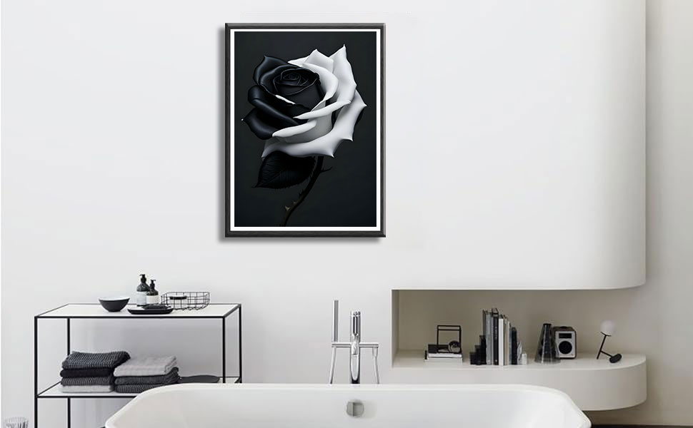 أبعاد الفن الجداري باللونين الأبيض والأسود: أبعاد ديكور الحائط العصري على شكل زهرة الورد باللونين الأبيض والأسود هي: 12 × 16 بوصة، يرجى ملاحظة أن اللوحة ليست مؤطرة الآن فأنت بحاجة إلى تأطيرها بنفسك