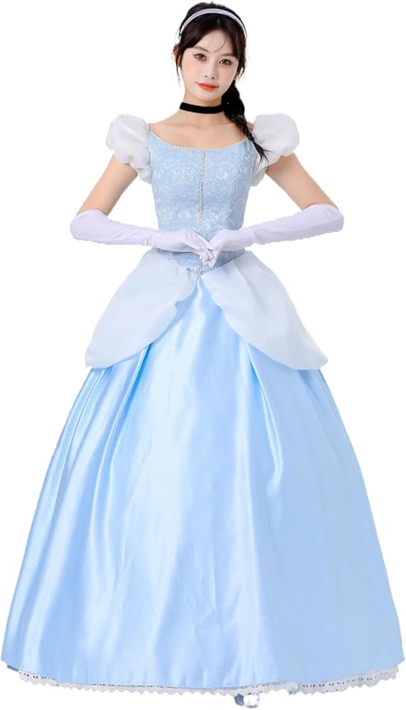 - Women's Cosplay Costume Classic Enchanted Cinderella Princess Ball Gowns for Halloween Party with Glitter