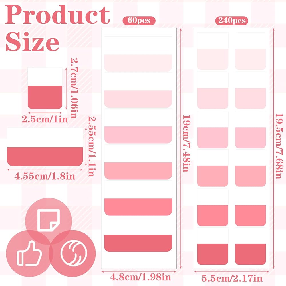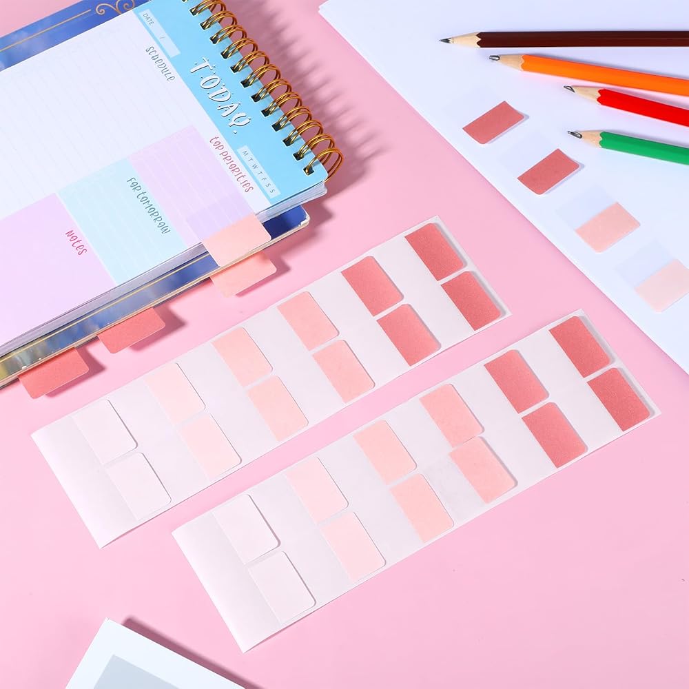 Transform your organizational system with our comprehensive set of 300 sticky index tabs, designed to bring efficiency and elegance to your study and work routines. These page markers feature a sophisticated gradient pink design that adds visual appeal while maintaining professional functionality.