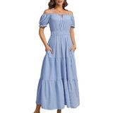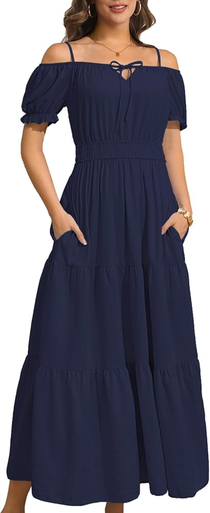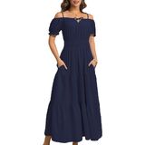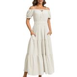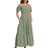 This maxi dress is perfect to dress up or down depending on your day,The women's summer dress can be worn as a beach dress for women to enjoy a wonderful vacation,This women's casual dress features a flattering waistline and puff sleeves,making it both comfortable and slimming.