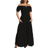 This maxi dress is perfect to dress up or down depending on your day,The women's summer dress can be worn as a beach dress for women to enjoy a wonderful vacation,This women's casual dress features a flattering waistline and puff sleeves, making it both comfortable and slimming.