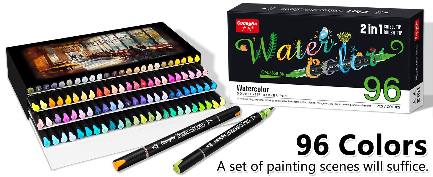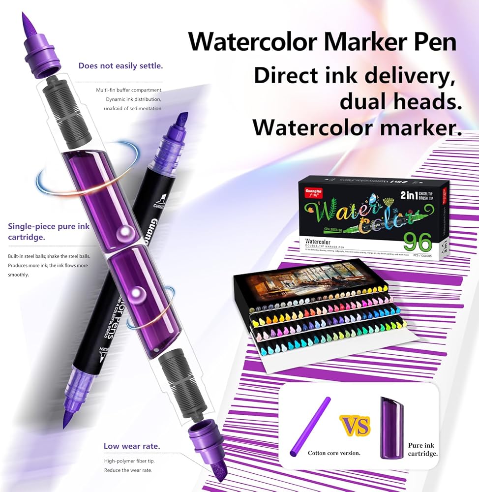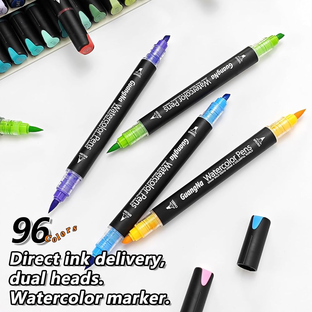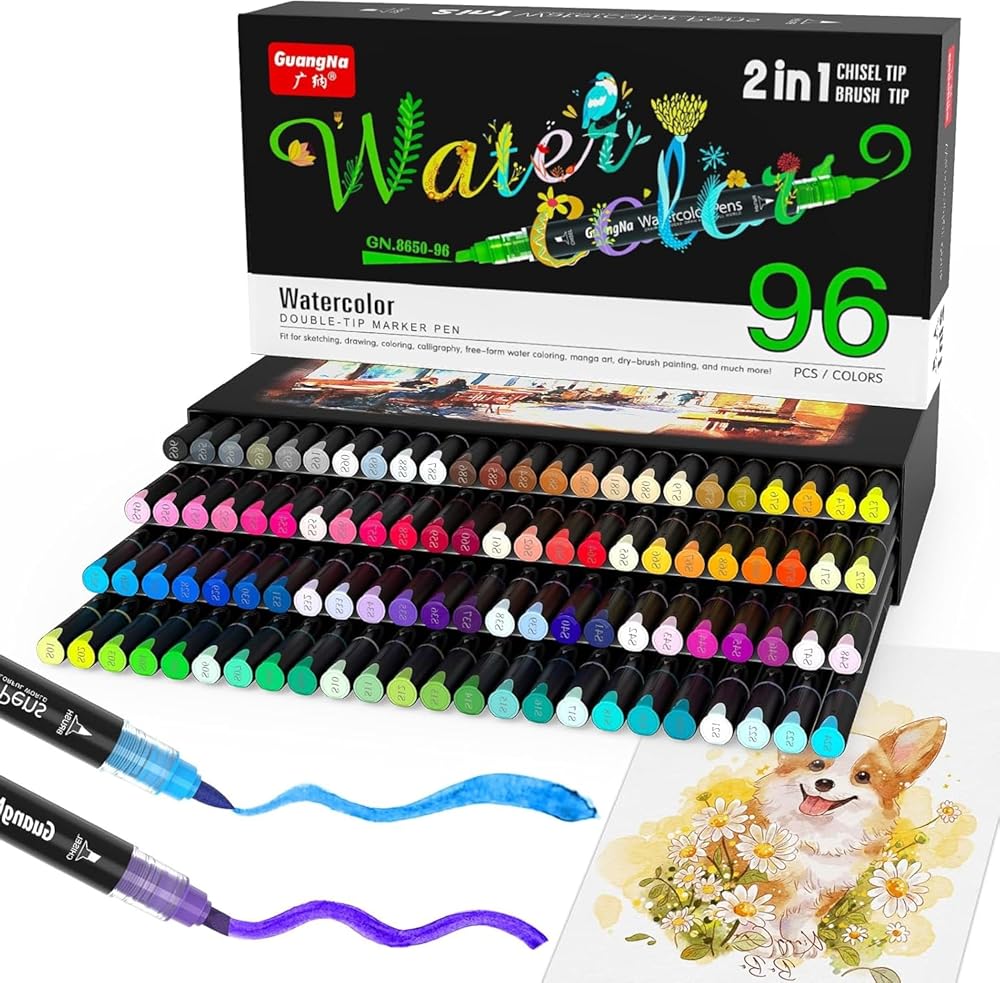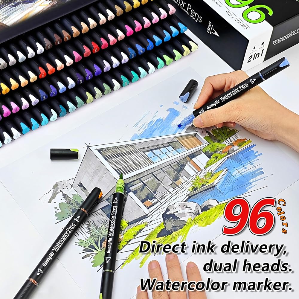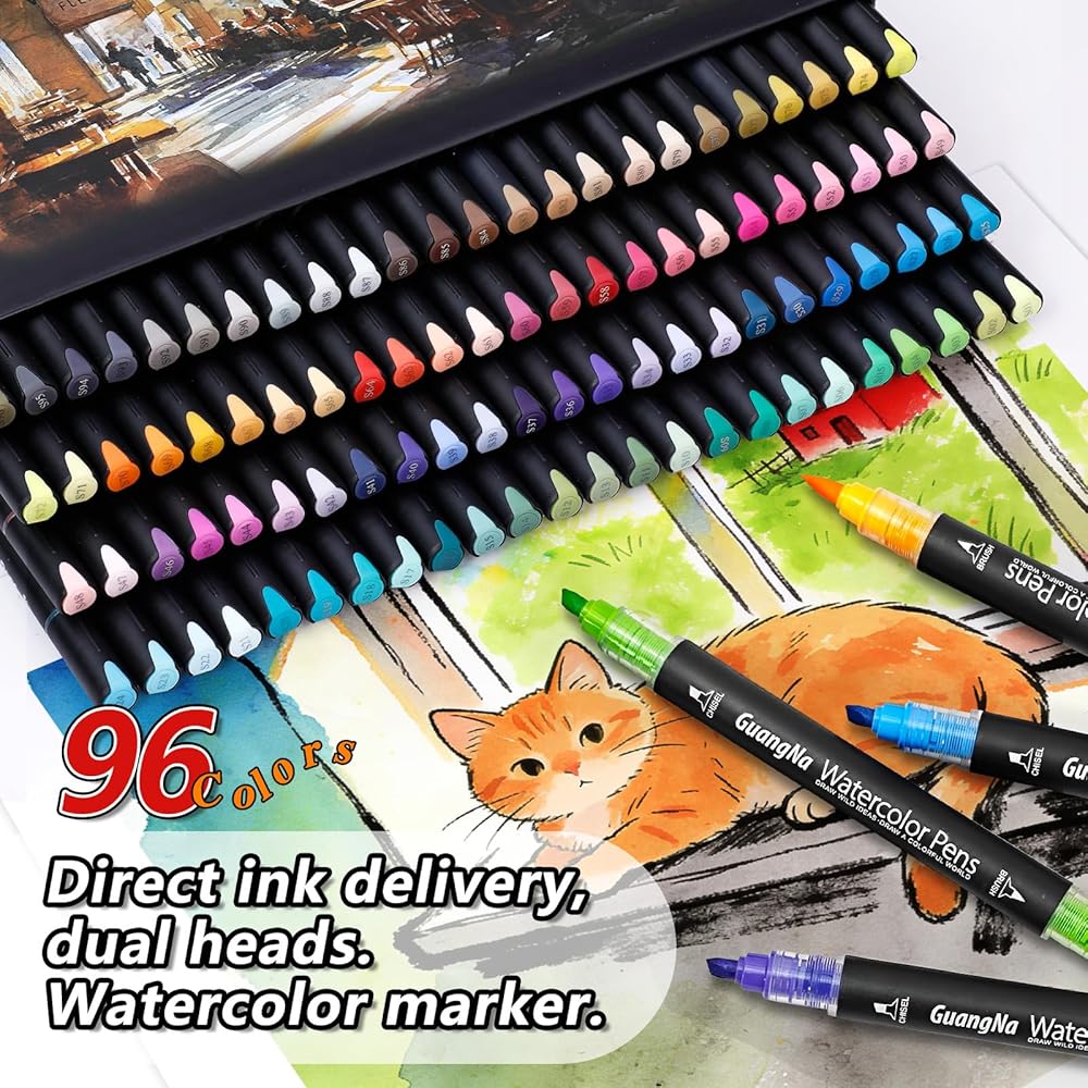 مجموعة أقلام ألوان مائية احترافية من DICEKOO مكونة من 96 لونًا ذات طرف مزدوج، وأقلام تحديد برأس فرشاة وإزميل، وحبر مائي، وعديم الرائحة ومقاوم للماء، ويمكن مزجها بسهولة، وحيوية، وناعمة، ومستلزمات فنية احترافية