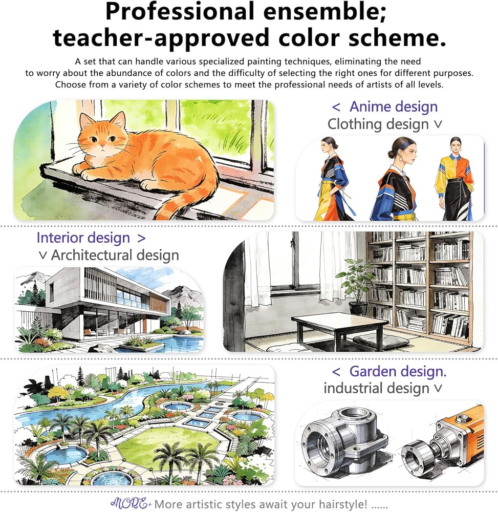 ✨مجموعة أقلام تحديد الألوان المائية الاحترافية: هذه مجموعة من الأدوات المصممة للتعامل مع تقنيات الرسم الاحترافية المتنوعة، وتتميز بنظام ألوان معتمد من المعلم. لا داعي للقلق بشأن التحدي المتمثل في اختيار الألوان المناسبة لأغراض مختلفة، لأنه يوفر مجموعة واسعة من خيارات الألوان. يلبي الاحتياجات المهنية للفنانين على جميع مستويات المهارة.