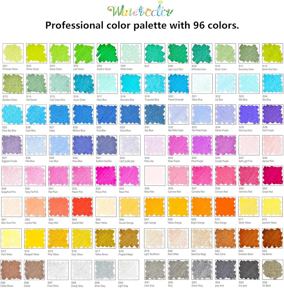 🌈96 لوحة ألوان احترافية: أصباغ نابضة بالحياة على مستوى الفنان، كل منها مصنوعة خصيصًا بألوان محددة. تسمح أقلام الرسم هذه للفنانين بإنشاء تأثيرات متدرجة جميلة ومزج الألوان دون عناء. تحقق الأصباغ الاحترافية المقاومة للماء - بمجرد أن يجف الحبر المائي تمامًا - نتائج مقاومة للماء وسريعة الضوء، مما يجعلها مناسبة لتقنيات الرسم الأساسية والمتقدمة.