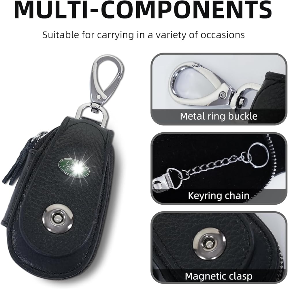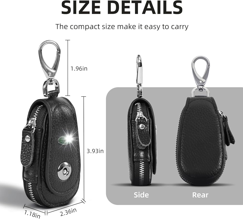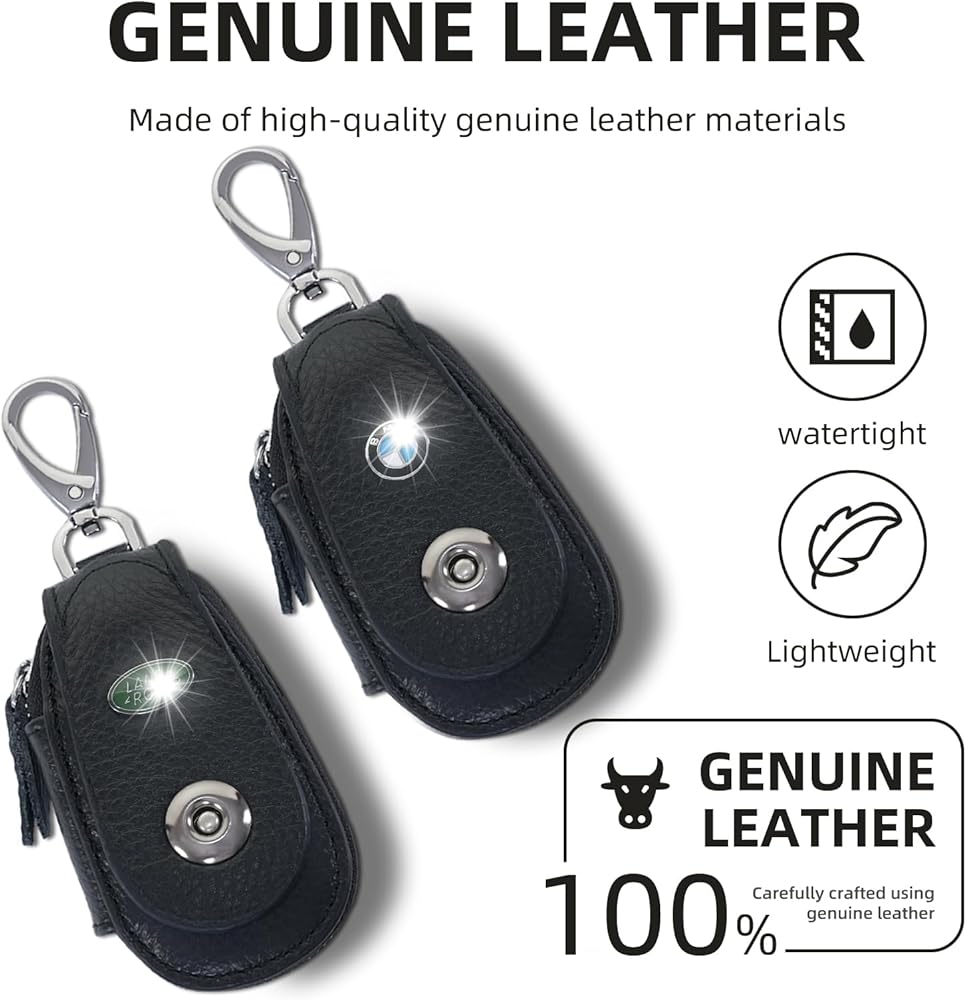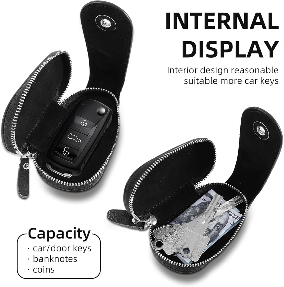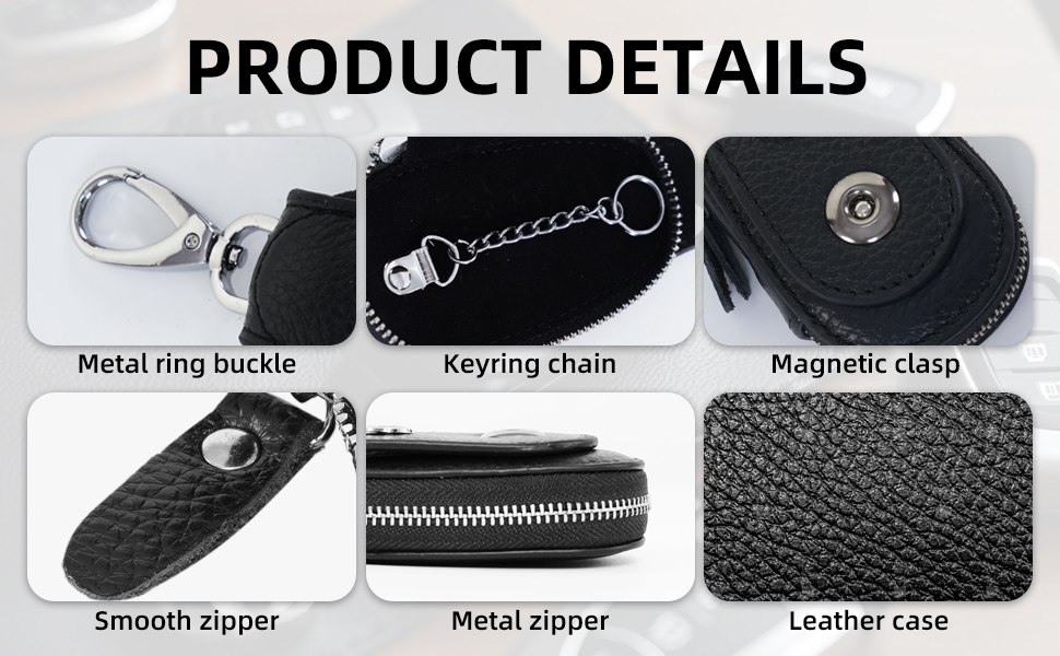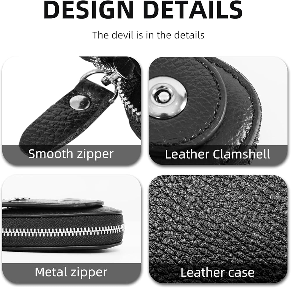 【مادة ممتازة】حامل المفاتيح مصنوع من جلد جينيني، مع سحابات معدنية عالية الجودة وأجزاء صلبة متينة. يضمن السحاب المعدني جودته ومتانته. ملمس ناعم جدًا ومريح عند اللمس، والتصميم الرائع يمكنه حماية مفاتيح سيارتك من التلف والغبار والخدوش في جميع الاتجاهات.