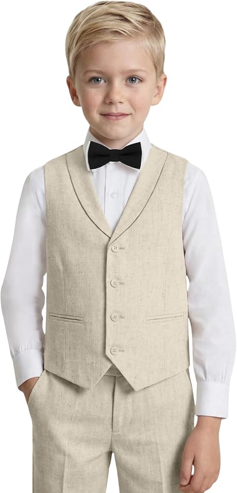 Boys Linen Suits for Boy Slim Fit 4 Pcs Vest Pants Tie Beach Summer Lightweight Set for Teens Dress Clothes Wedding Outfit