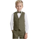 【Kids Formal Suit Set】All-in-one sharp suit set: adjustable linen-back vest, tailored linen pants (stretchy elastic waist), plus both necktie and bowtie. No mix-and-match hassle—perfect for special occasions! Shirt are not included.