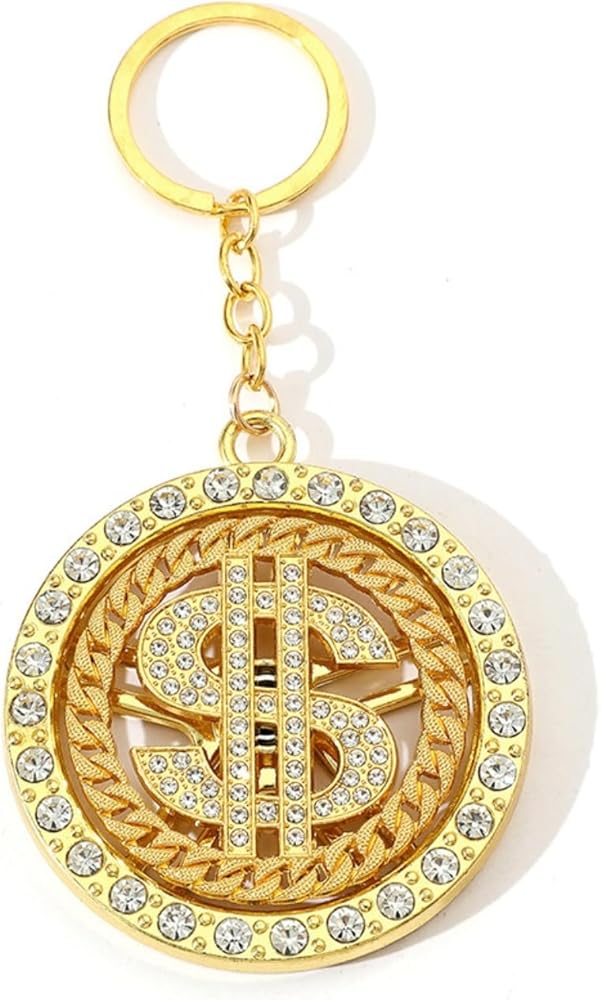 Made of high-quality alloy, it features bright colors, is sturdy and will not break easily.(The dollar mark in the middle of the keychain can be rotated.)