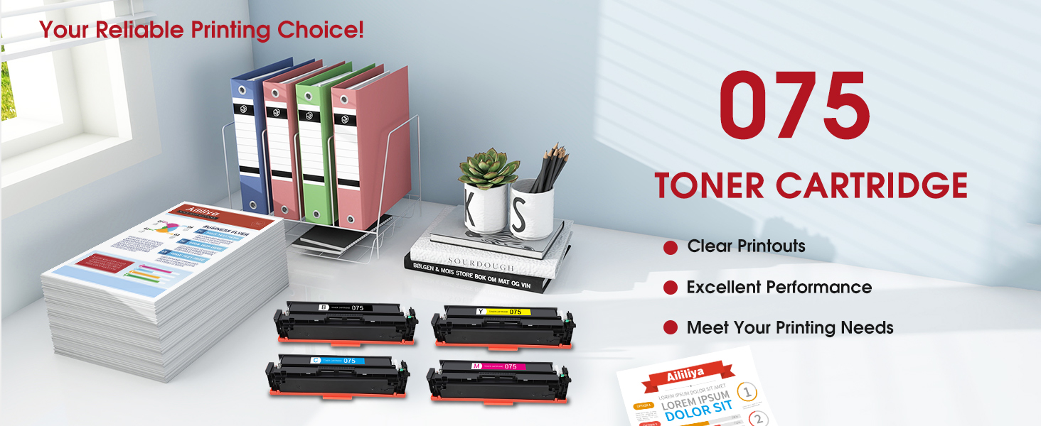 مجموعة ألوان مكونة من 4 عبوات: تتضمن هذه الحزمة 075 أسود، 075 سماوي، 075 أصفر، 075 أرجواني - كل ما يلزم لطباعة نابضة بالحياة وملونة بالكامل. تعمل العبوة الكاملة المريحة على تبسيط عملية الاستبدال وتعزيز كفاءة الطباعة
