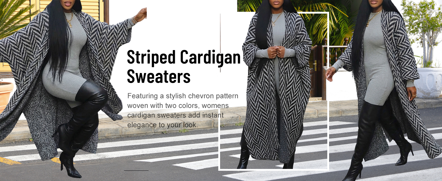 النسيج: هذه السترة المخططة مريحة وملائمة بشكل جيد، والسترات الصوفية للسيدات جيدة التهوية وناعمة وخفيفة الوزن. سترة صوفية طويلة تضيف القليل من الحلاوة غير الرسمية.