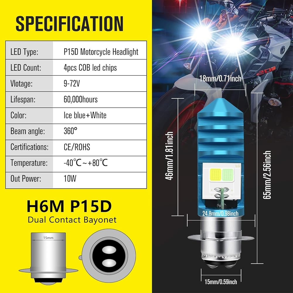 2 قطعة لمبات LED ATV 9-48 فولت، شعاع منخفض أزرق جليدي عالي الشعاع أبيض H6M P15D لمبات LED لدراجة نارية أو Y amaha، A TVS Y FM350 450 400 660 700 Raptor.
