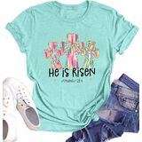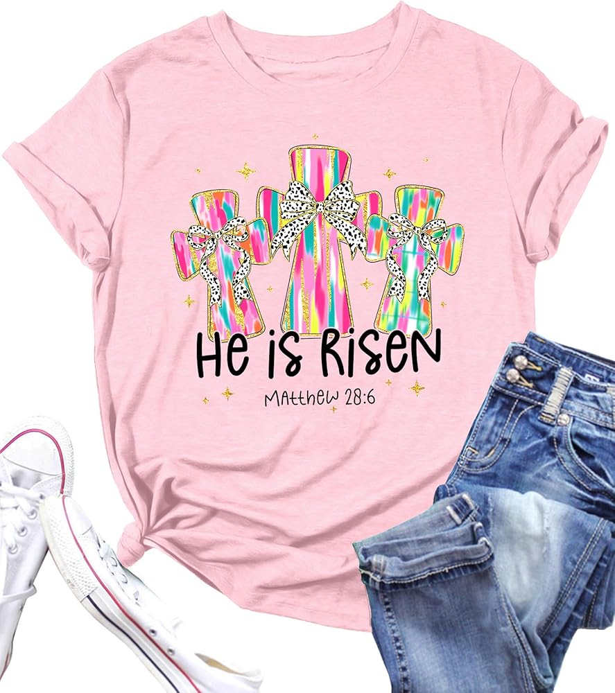 Christian Easter Shirts for Women He is risen Cross T-shirt Happy Easter Shirt Jesus Faith Bible Verse Gifts Tee Tops