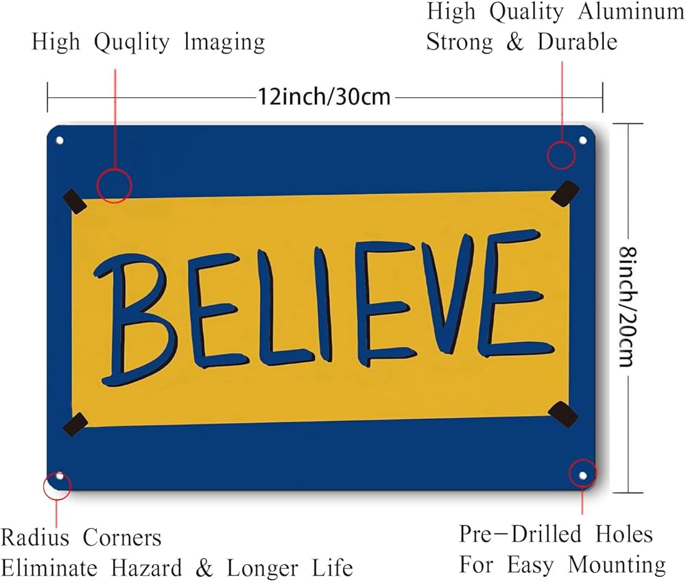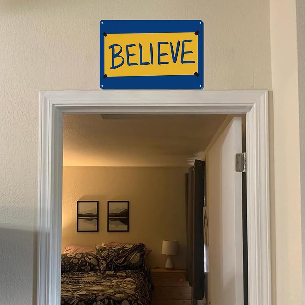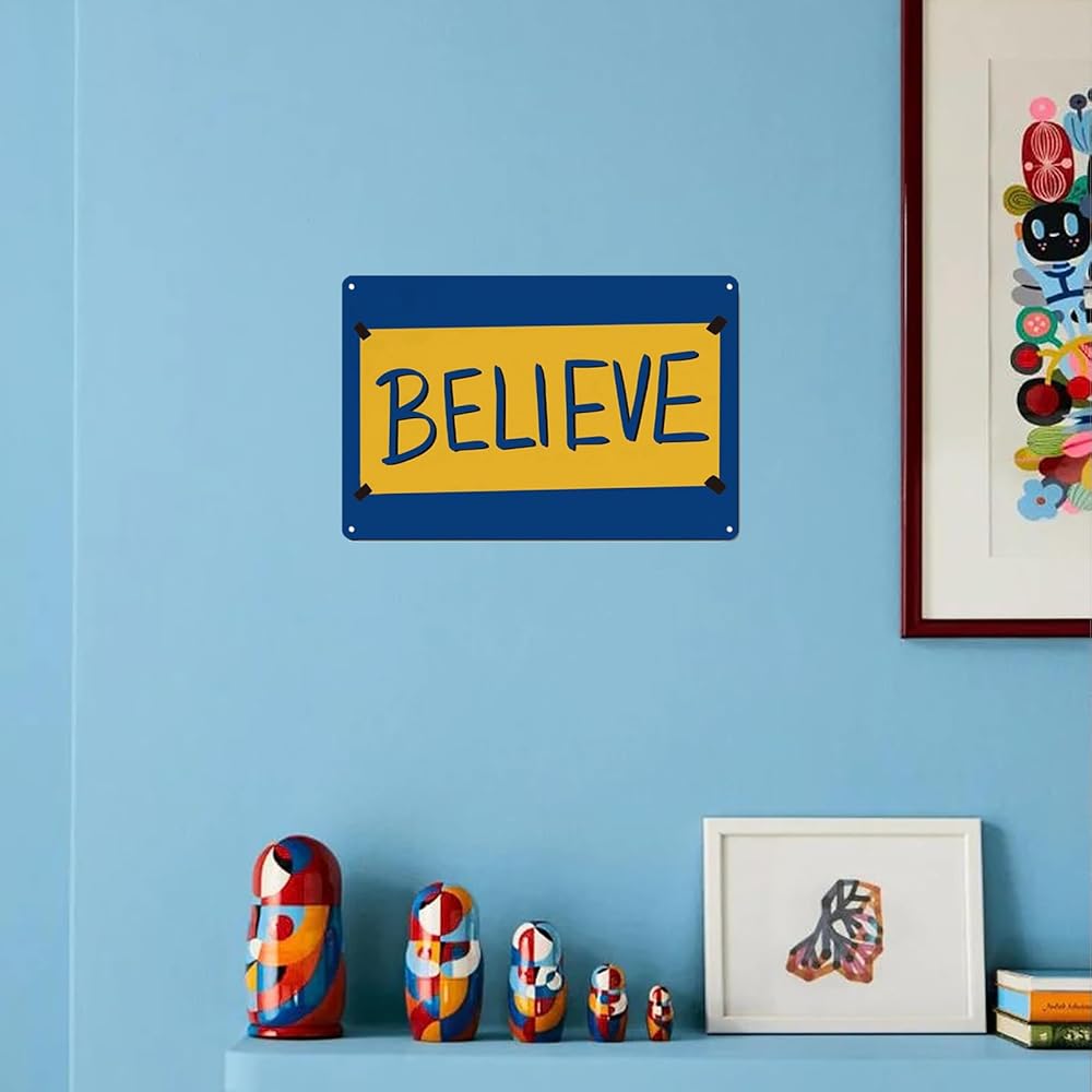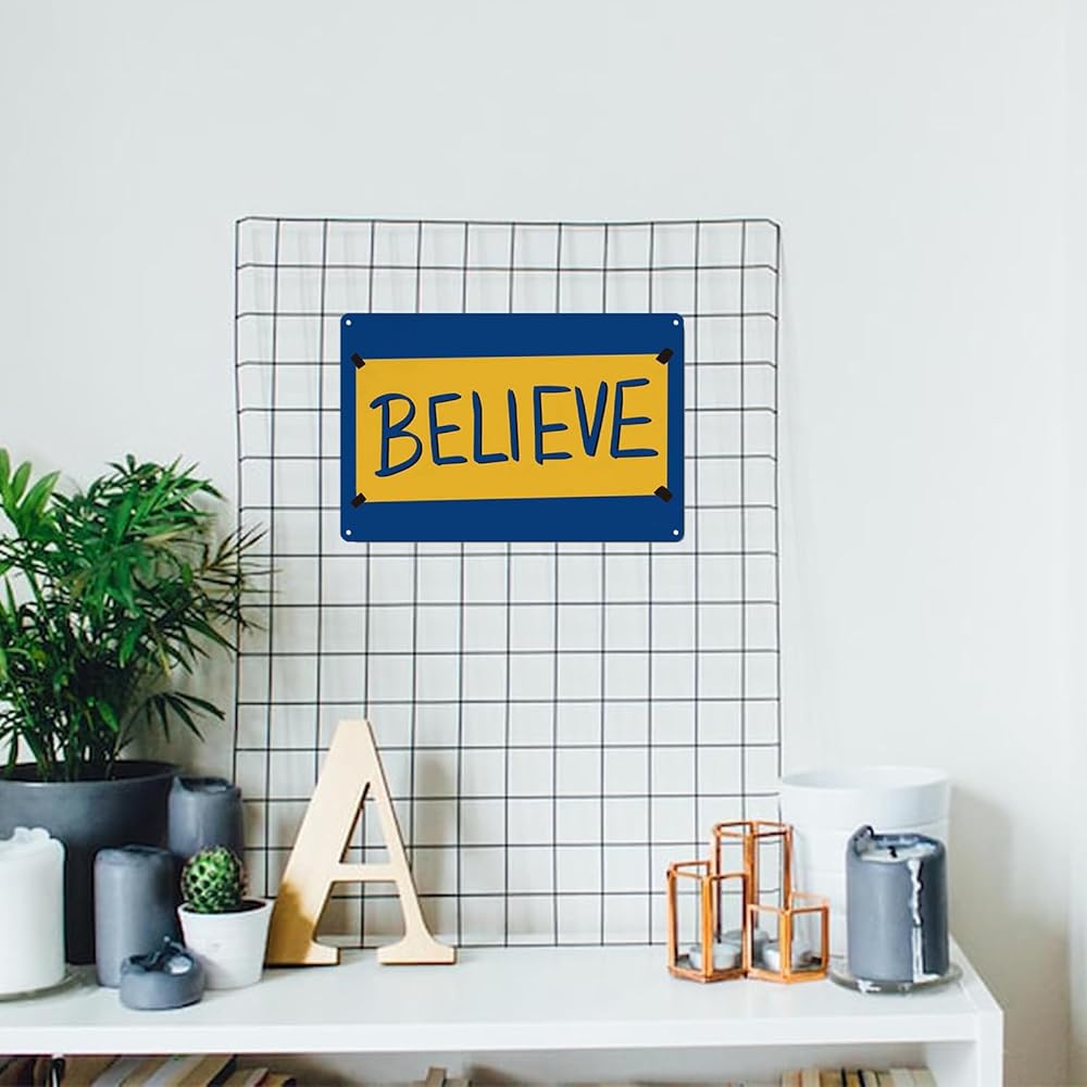 علامة Believe، هدايا ديكور فنية جدارية تحفيزية معدنية للمنزل والمكتب الأمامي ولوحة معلقة (8 × 12 بوصة)