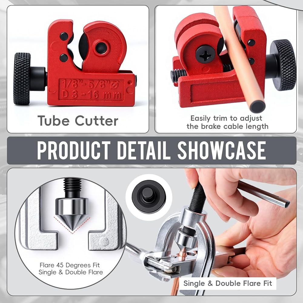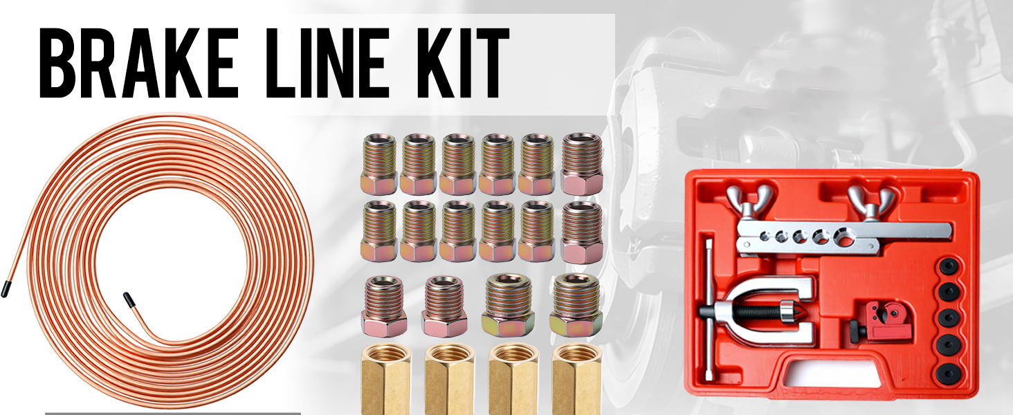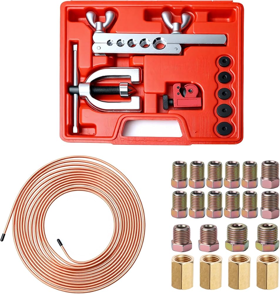 أحدث مجموعة خط فرامل مطلية بالنحاس بطول 25 قدم 3/16 بوصة مع 16 تركيبًا و4 تركيبات خط فرامل اتحادية + مجموعة أدوات حرق مزدوجة ومفردة لمعظم أنظمة الكبح الهيدروليكية