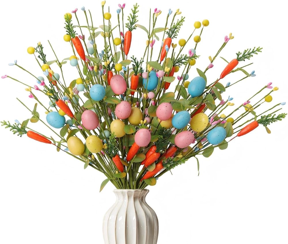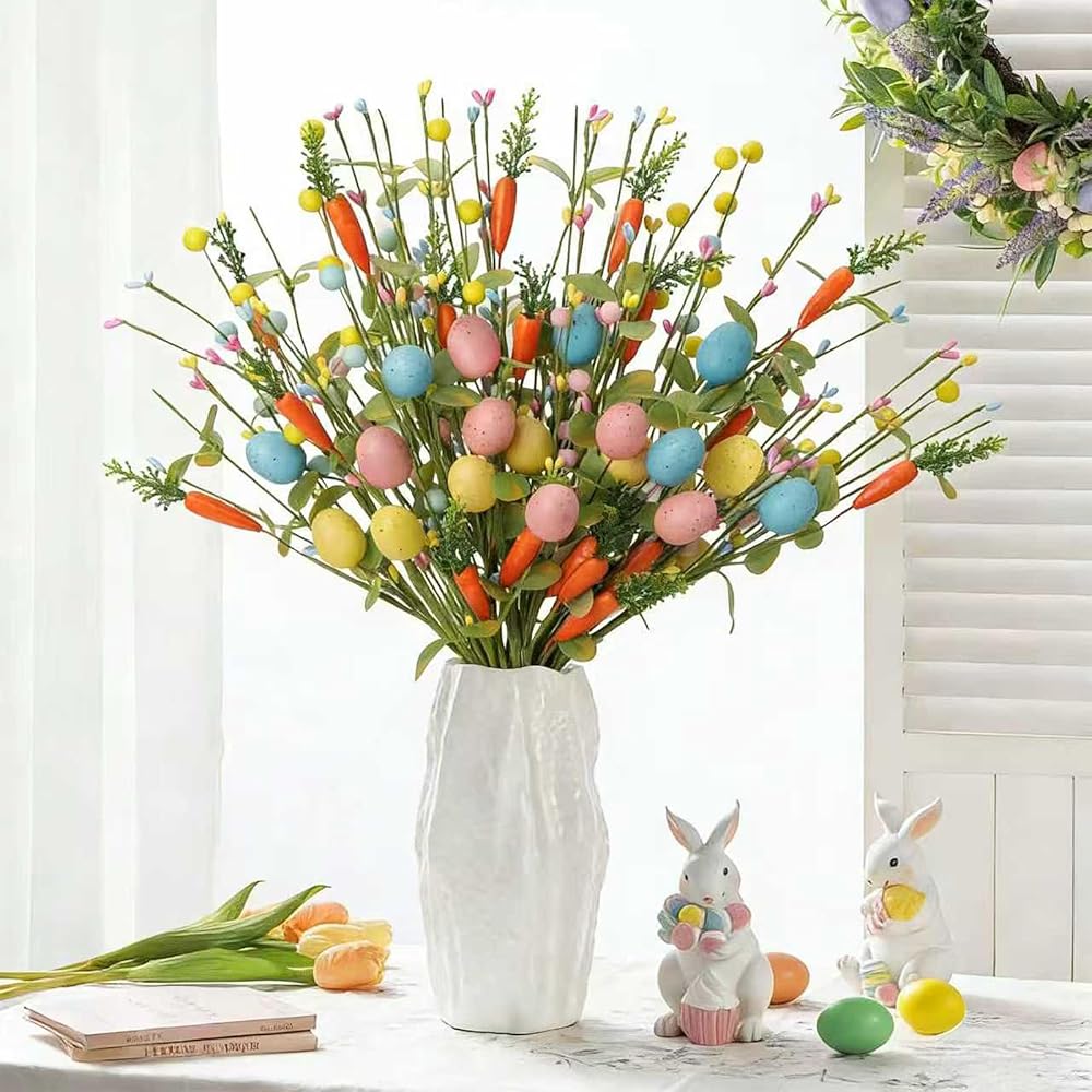 زينة عيد الفصح 6 حزمة عيد الفصح ينبع 17 بوصة يختار البيض الاصطناعي مع الجزر الملونة البيض أوراق الأوكالبتوس لغرفة المعيشة المركزية ديكور المنزل زهرية