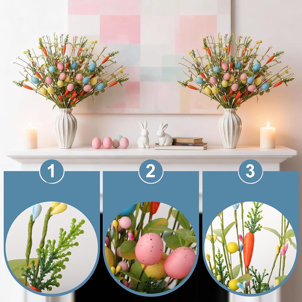 • مواد فاخرة: سيقان التوت المختارة يدويًا لعيد الفصح مصنوعة من إسفنج عالي الجودة وسلك معدني قوي، وتتميز بألوان نابضة بالحياة وواقعية. إنها الديكور المثالي لاحتفالات عيد الفصح الخاصة بك