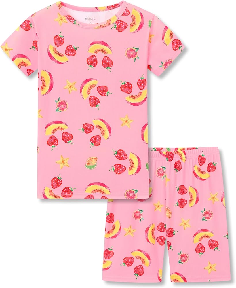 *Features: These girls' 2-piece rib-knit pajamas feature an apricot orange base, with all-over lovely candy bear graphic prints on the short-sleeve crewneck pj top and sleep shorts. These charming all-over prints add a sweet touch that ensures your little girl will be excited to put them on night after night.