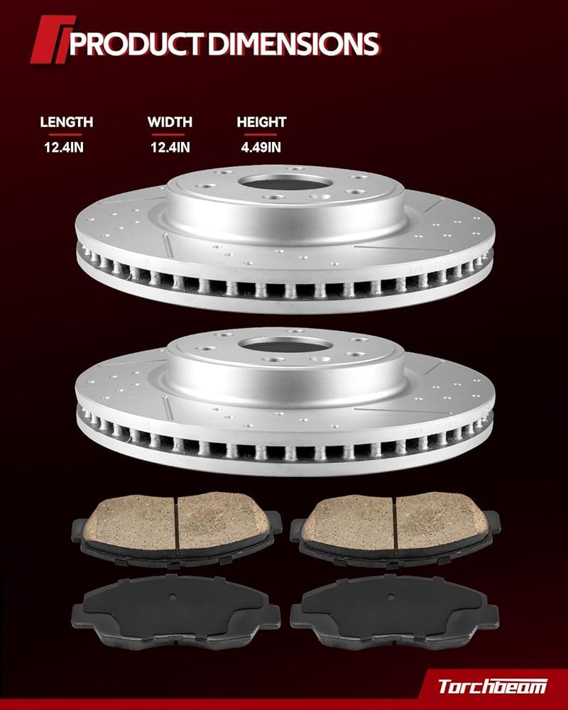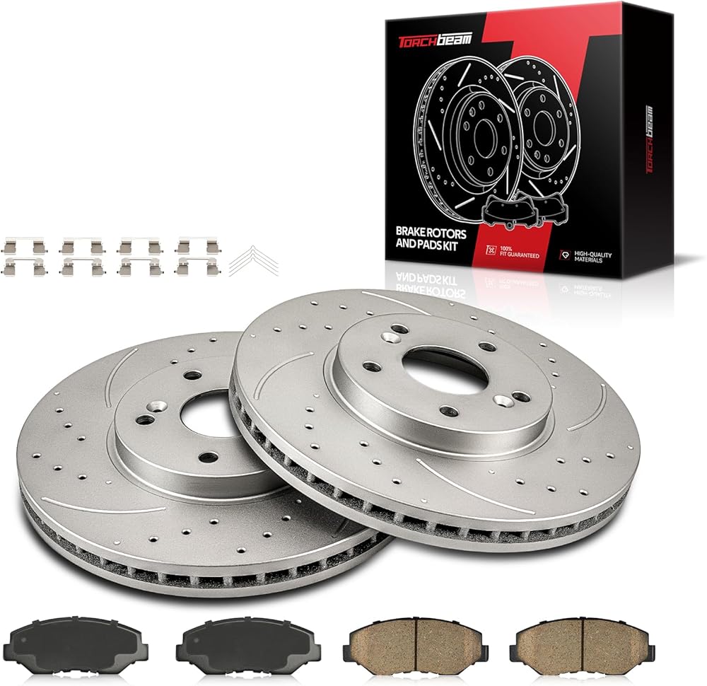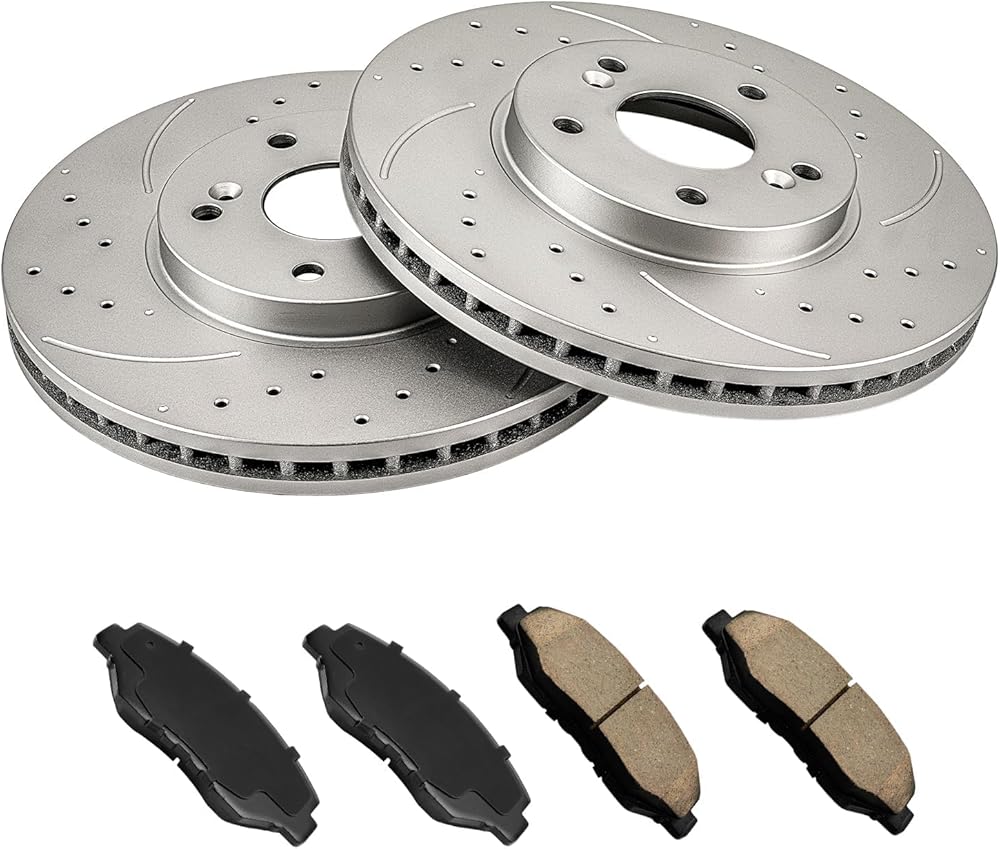 استبدال مجموعة الفرامل المكونة من 6 قطع: تأتي مجموعة الفرامل البديلة لدينا مع دوارين أماميين للخدمة الشاقة بالإضافة إلى 4 وسادات فرامل بديلة للسيارات مصممة لتتجاوز مواصفات OEM باستخدام مواد عالية الجودة للأداء والاستخدام طويل الأمد.