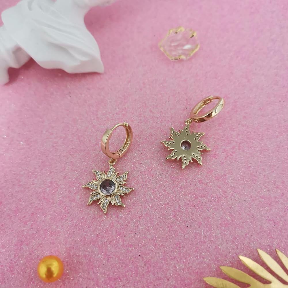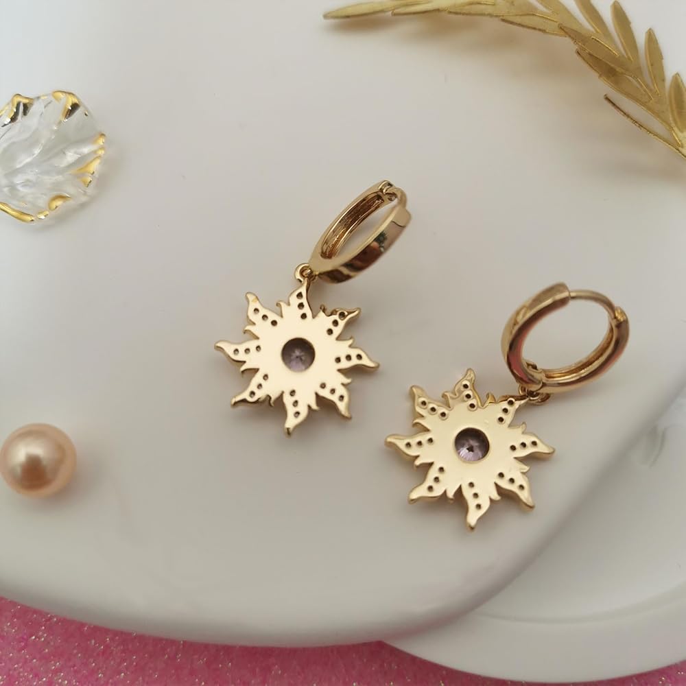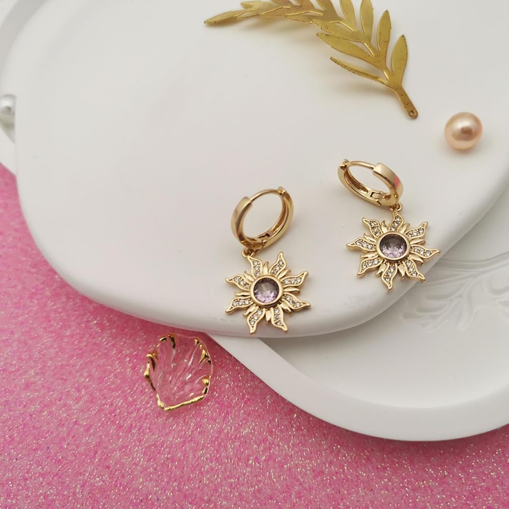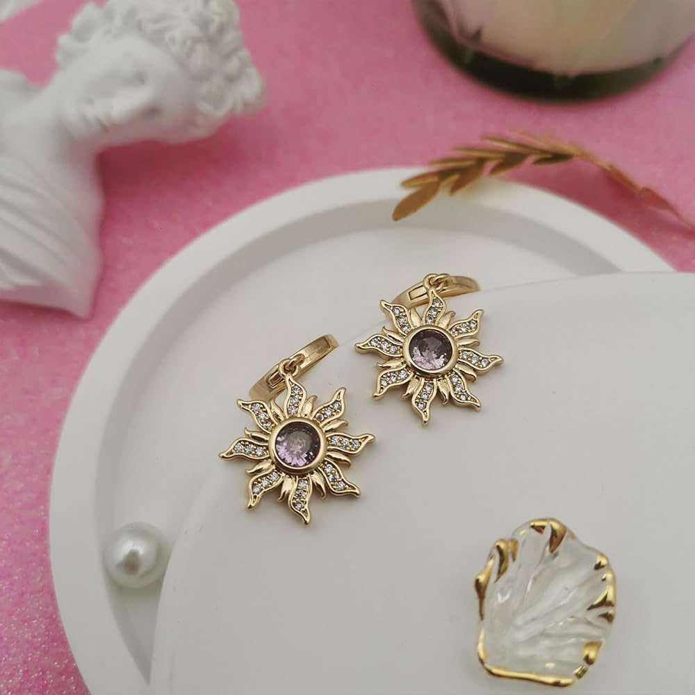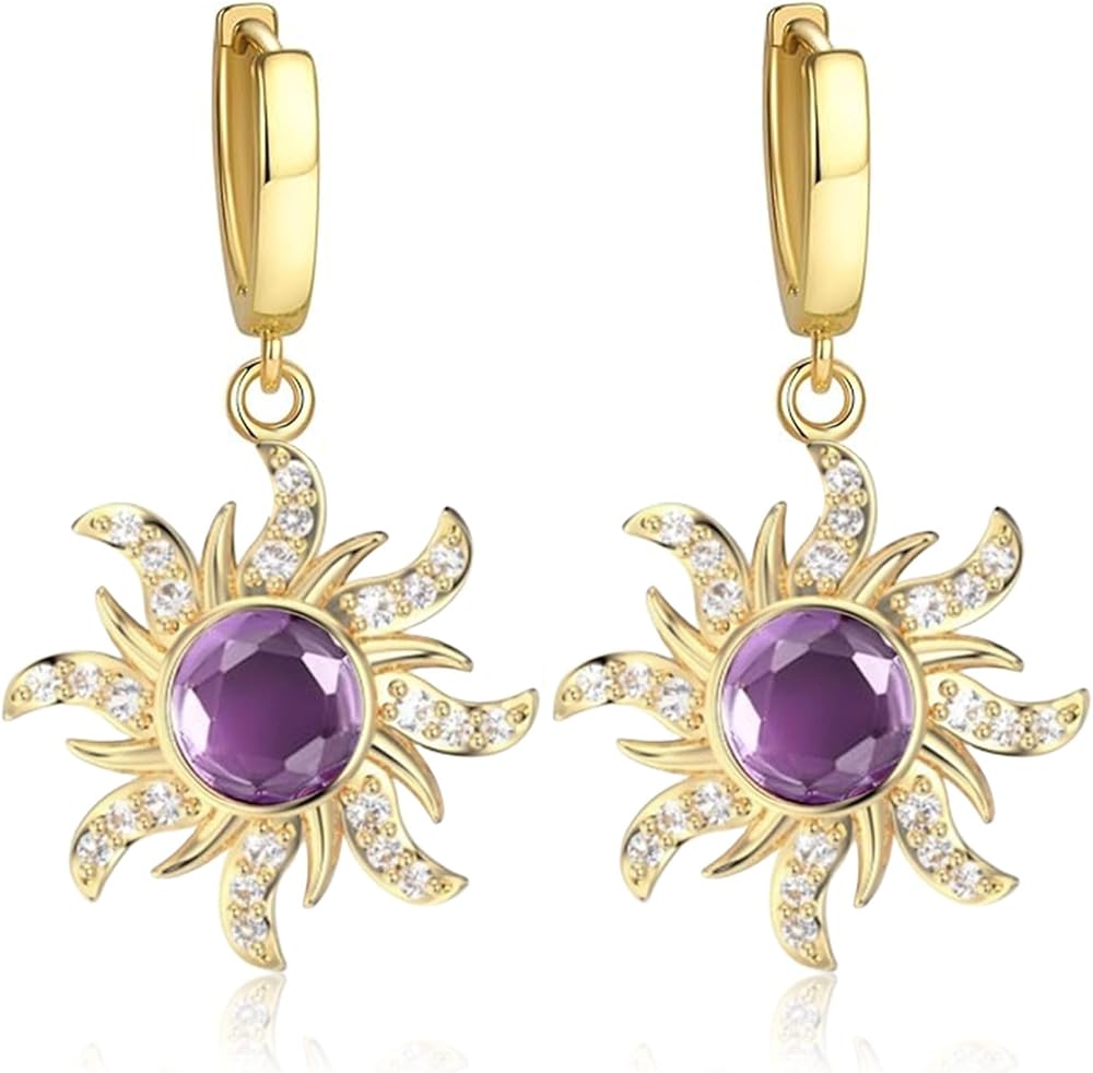 Princesses Spinning Sun Earrings Purple Cubic Zirconia Flower Earrings for Women Sundrop Charm Accessories Princess Gifts Jewelry.